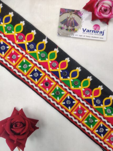 Varniart Amazing Kachi mirror work Lace (35 MM Width, 9 Meter)- S 587