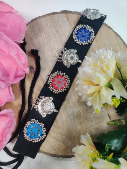 Varniart Stylist Silver Charm Mirror Work Waist Belt