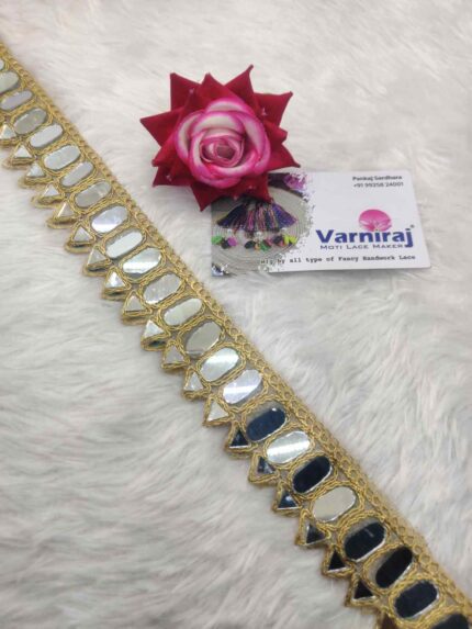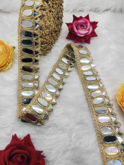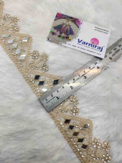 Varniart Amazing Pearl Mirror with Jarkan stone Lace Border (9 Meter- 35 MM Width) S 857