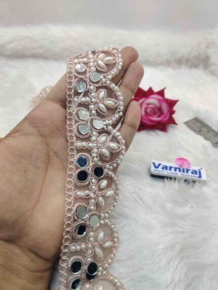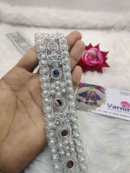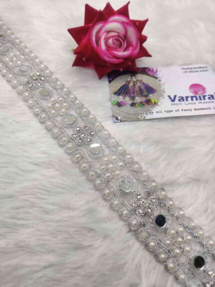 White Moti with Mirror work Lace Border (9 Meter- 45 MM Width) S 905