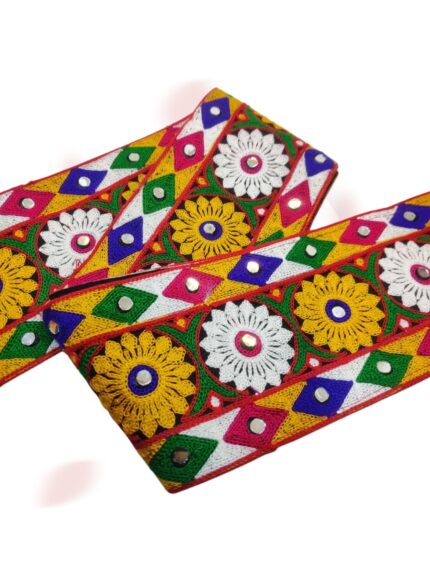Varniart Amazing 9Meter Kutchi Traditional Mirror Work Lace | Handmade Embroidered Border for Chaniya Choli, Baby Frock, Saree, Dupatta, Blouse & Craft | S 1182