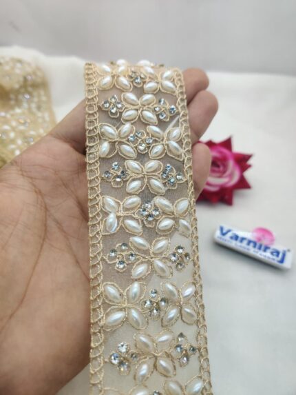 Jarkan Stone and Pearl Lace Trim (9 Meter- 55 MM Width) S 901