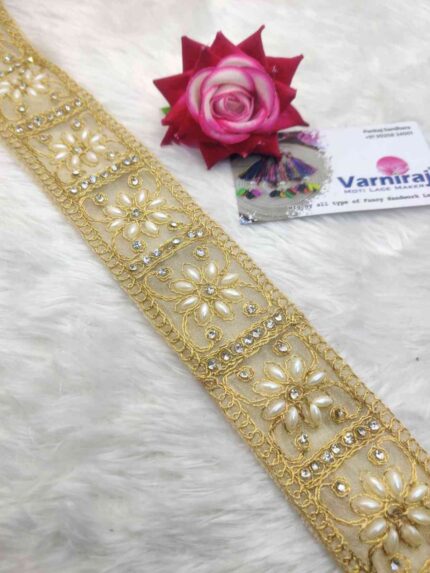 Varniart Amazing Jarkan Stone With Mirror Pearl Lace Trim (9 Meter- 50 MM Width) S 852