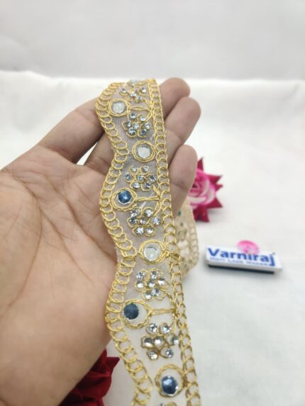 Varniart Amazing Stone Work Floral Embroidery Lace Border | Designer Beaded Trim for Saree, Lehenga, Dupatta & Craft Decoration (9 Meter) | S 353