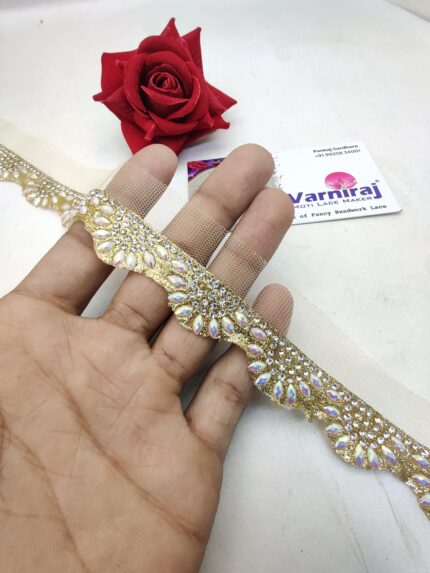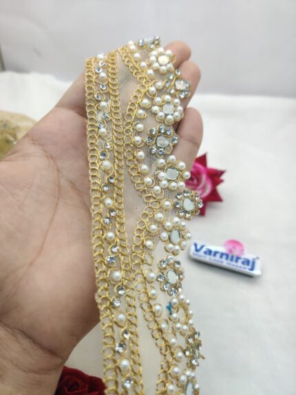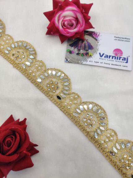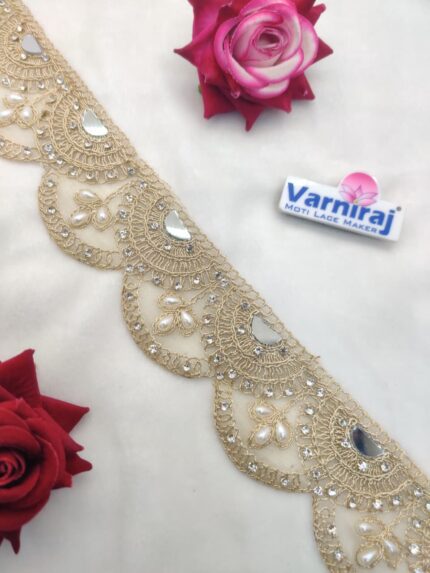 Curved Pearl Mirror Lace Border (9 Meter- 30 MM Width) S 877