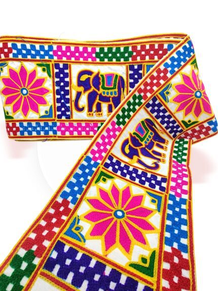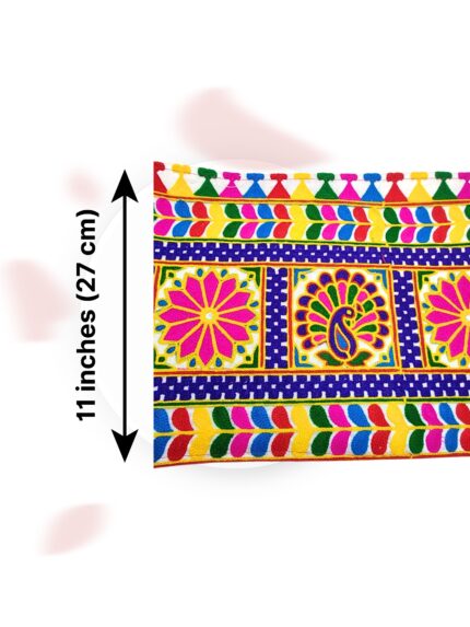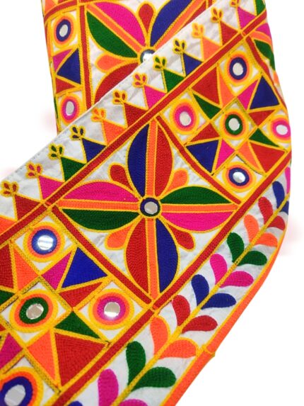 Kutchi Traditional Mirror Work Lace Border | Multicolor Embroidery Fabric Trim for Saree, Lehenga, Dupatta & Craft Decoration (9 Meter) | E 1201