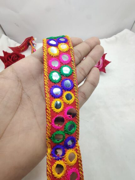 Kutchi Traditional Mirror Work Lace Border | Multicolor Embroidery Fabric Trim for Saree, Lehenga, Dupatta & Craft Decoration (9 Meter) | S 1191
