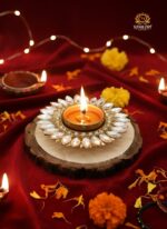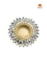 Bring a touch of elegance to your festive décor with this Crystal Petal Tealight Holder. Designed in a stunning floral pattern, the holder features sparkling crystal stones set on a golden base, creating a radiant glow when lit. Ideal for Diwali, weddings, puja rituals, or as a centerpiece, this tealight holder adds sophistication and charm to any celebration.