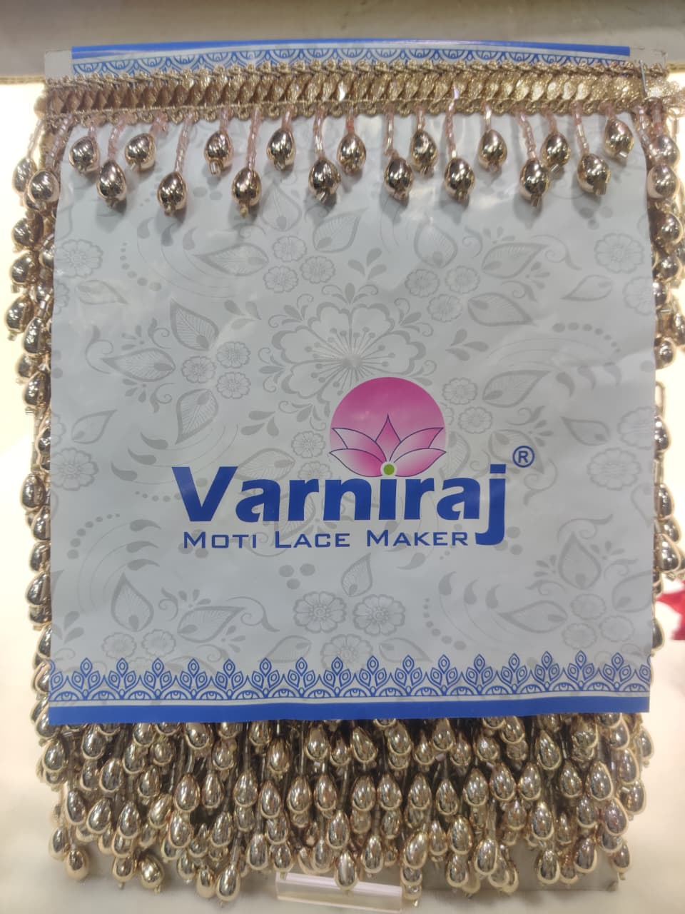 Varniart Bullet Trim Lace Border With Hanging Pearl Beads and Long Pari Lace Border(Pack of 1) (9 Meter-38 MM Width)- M 1042