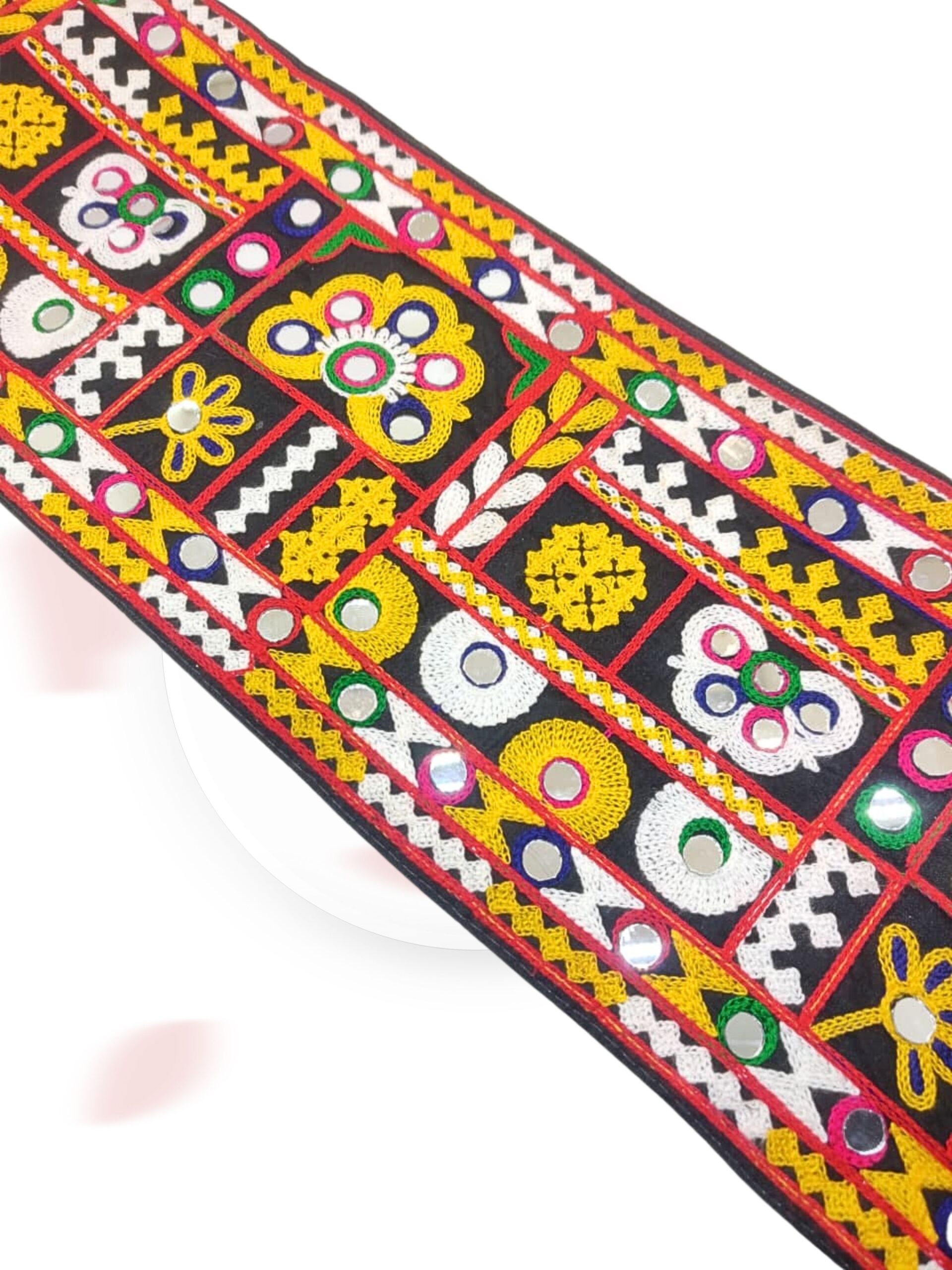 Kutchi Traditional Mirror Work Lace Border | Multicolor Embroidery Fabric Trim for Saree, Lehenga, Dupatta & Craft Decoration (9 Meter) | S 1192