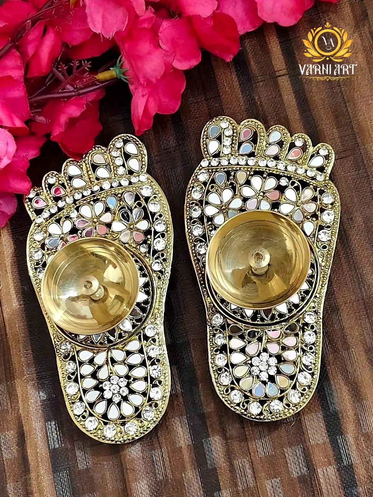Be the first to review “Metal Stone Laxmi Charan Diya – 1pair” Cancel reply