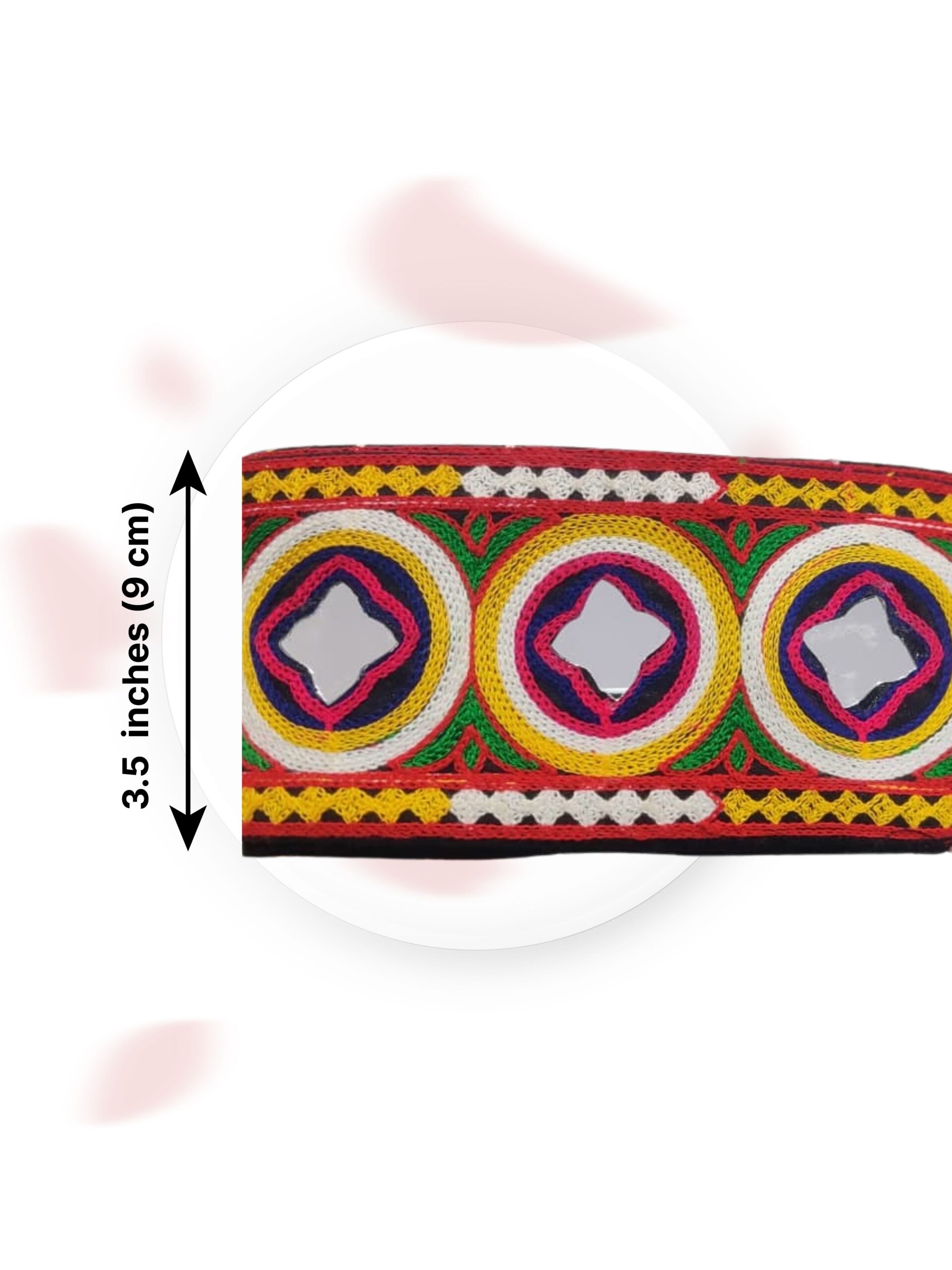Varniart Amazing 9Meter Kutchi Traditional Mirror Work Lace | Handmade Embroidered Border for Chaniya Choli, Baby Frock, Saree, Dupatta, Blouse & Craft | E 1084