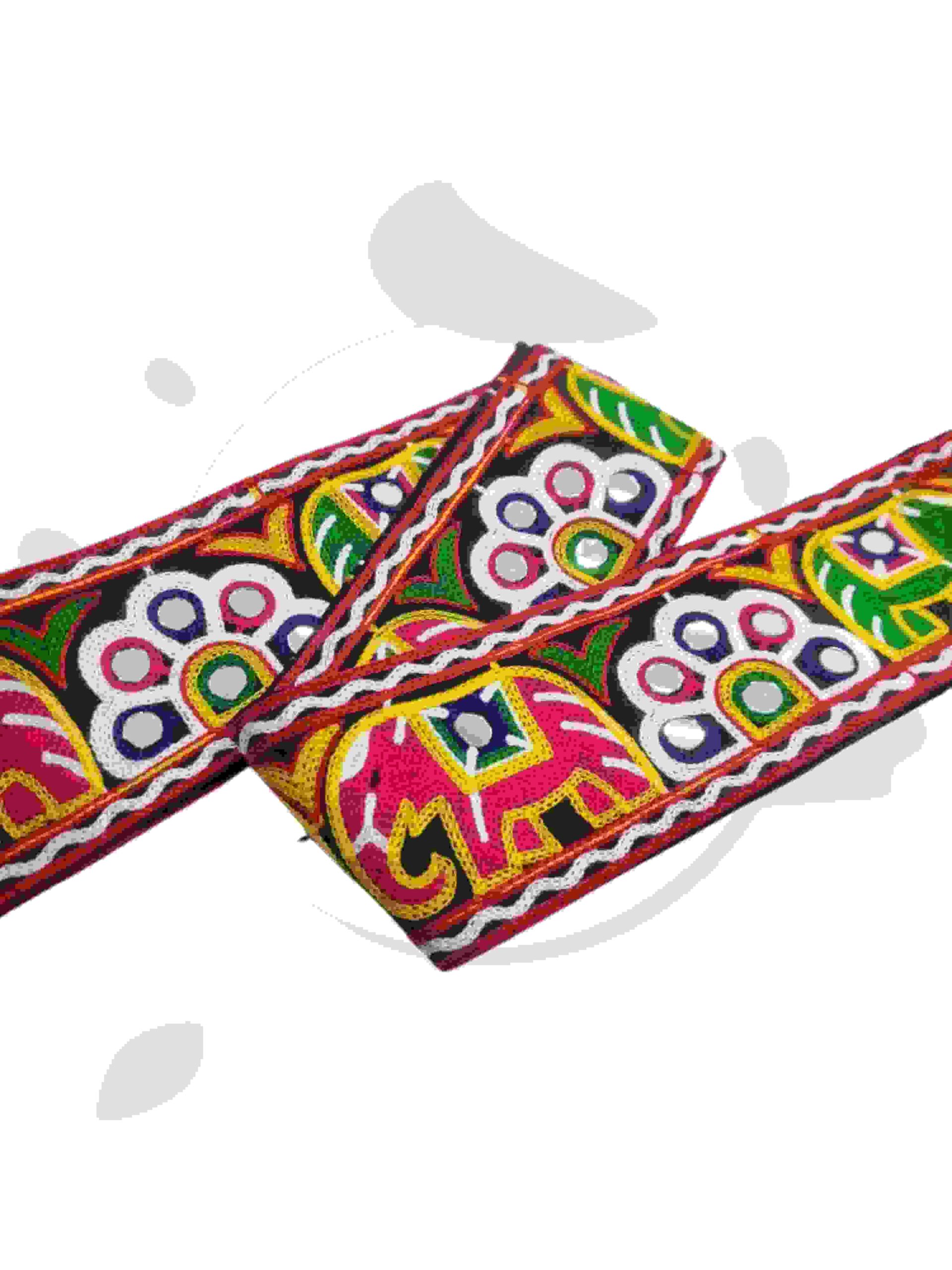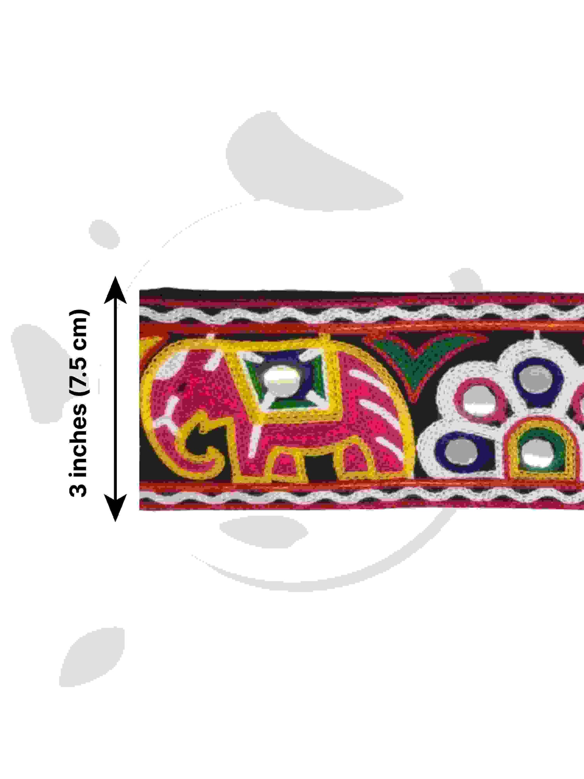 Varniart Amazing 9Meter Navratri Elephant and Peacock Design Traditional Border Lace | Handmade Embroidered Border for Chaniya Choli, Baby Frock, Saree, Dupatta, Blouse & Craft | S 1177