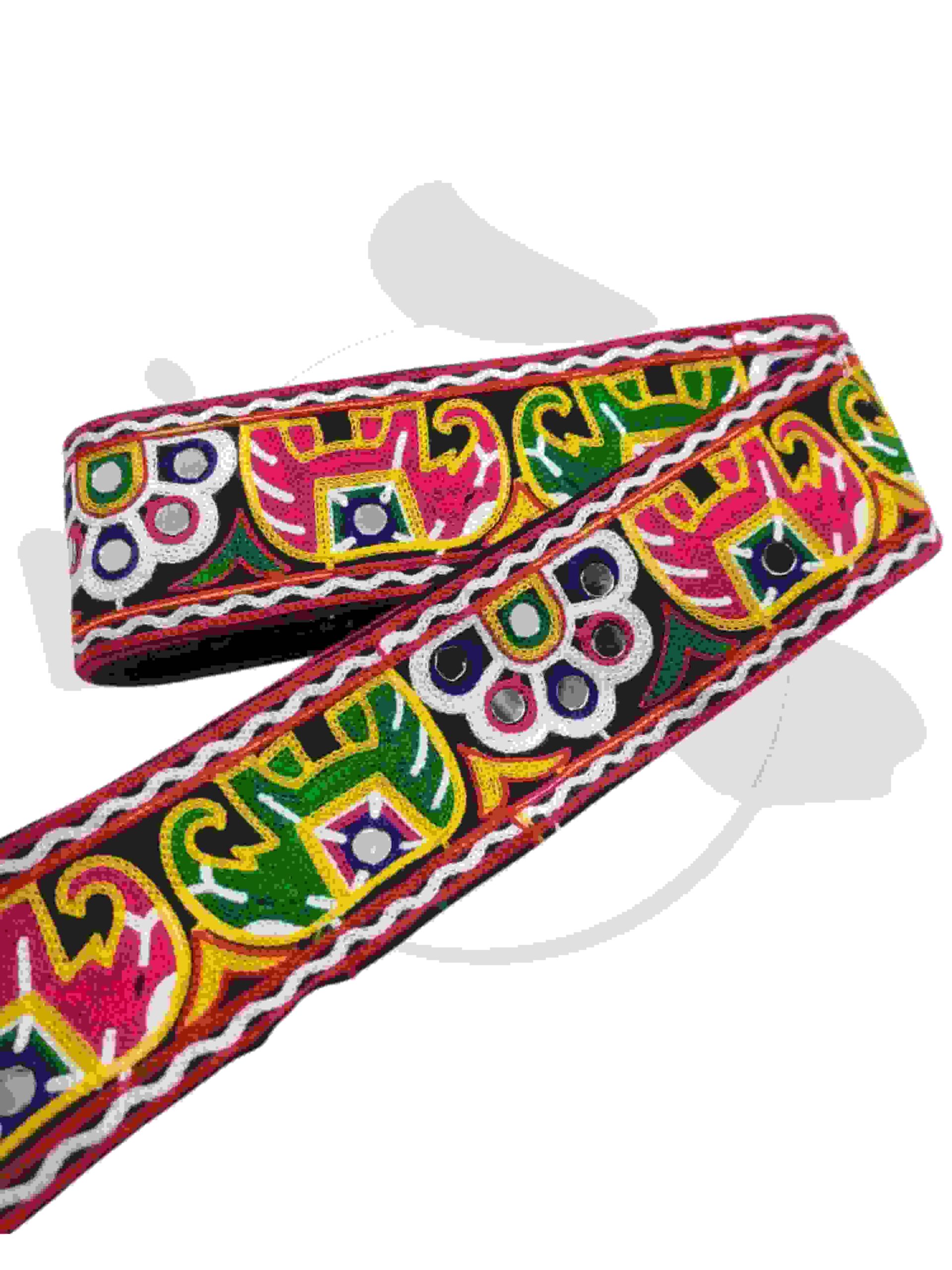 PREMIUM HANDMADE LACE! Add vibrant ethnic charm to your outfits with this Multicolor Traditional Kutchi Embroidery Lace with mirror work – perfect for Chaniya Choli, Baby Frocks, Balvuj Sarees, Dupattas, Blouses, and Craft Projects.