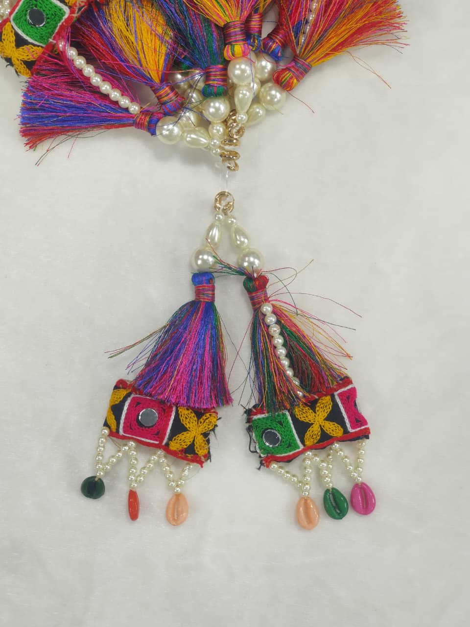 This vibrant and colorful latkan features intricate tassels and beads, adding a touch of traditional elegance to any outfit or accessory. Handcrafted with love and attention to detail, this latkan is a beautiful representation of cultural heritage and craftsmanship.
