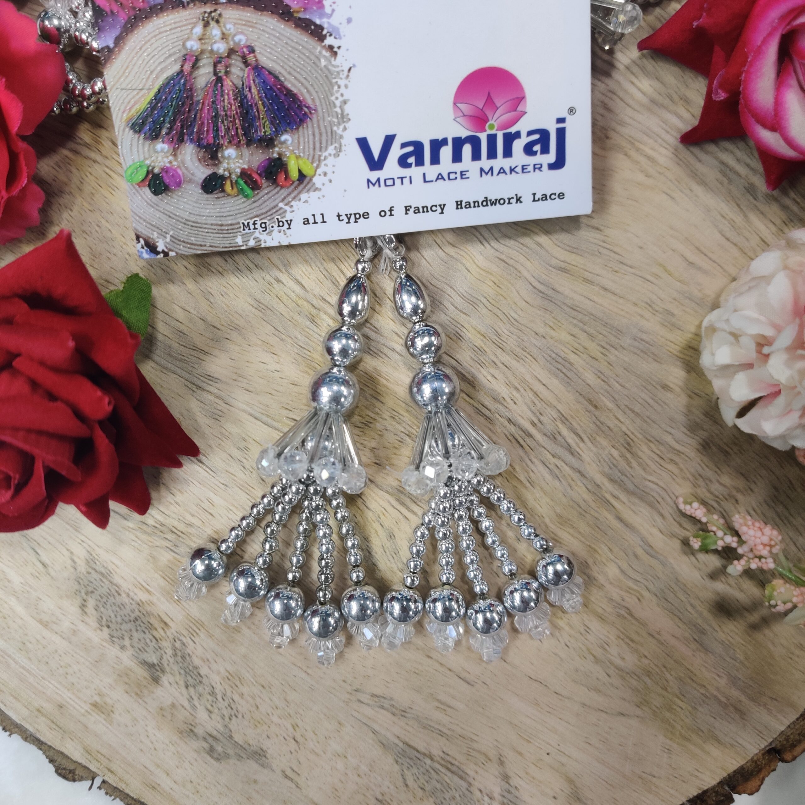 Varniart Amazing White Crystal Long Tassel Latkan (2 PCs)