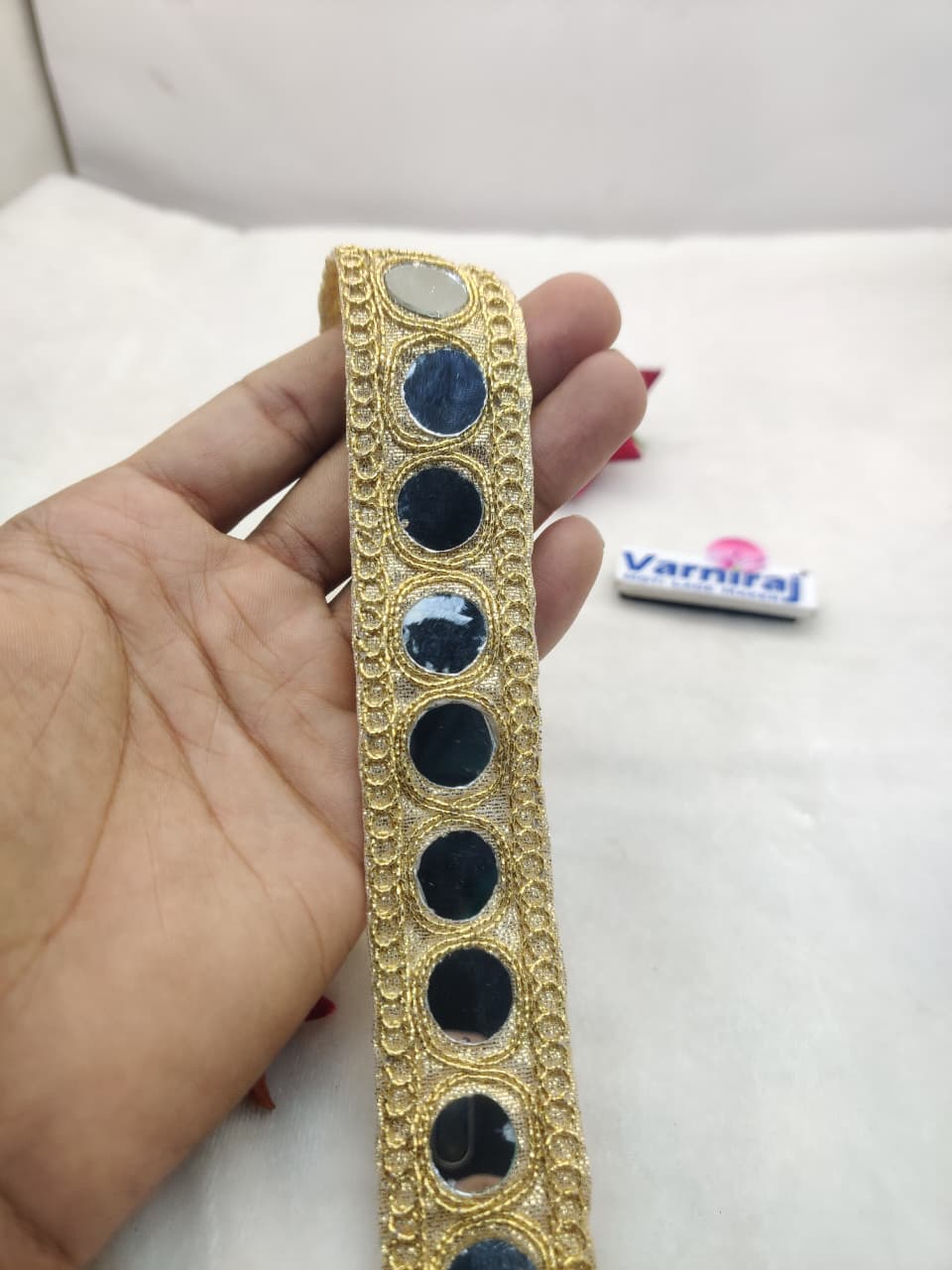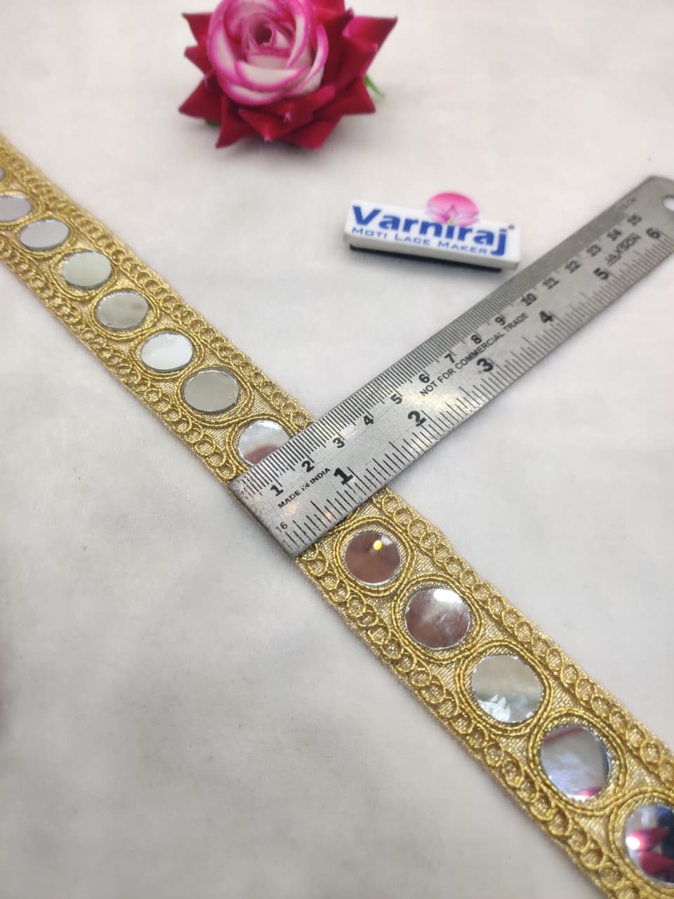 Varniart Amazing Golden Mirror Work Embroidered Lace Border (9 Meter- 35 MM Width) S 117