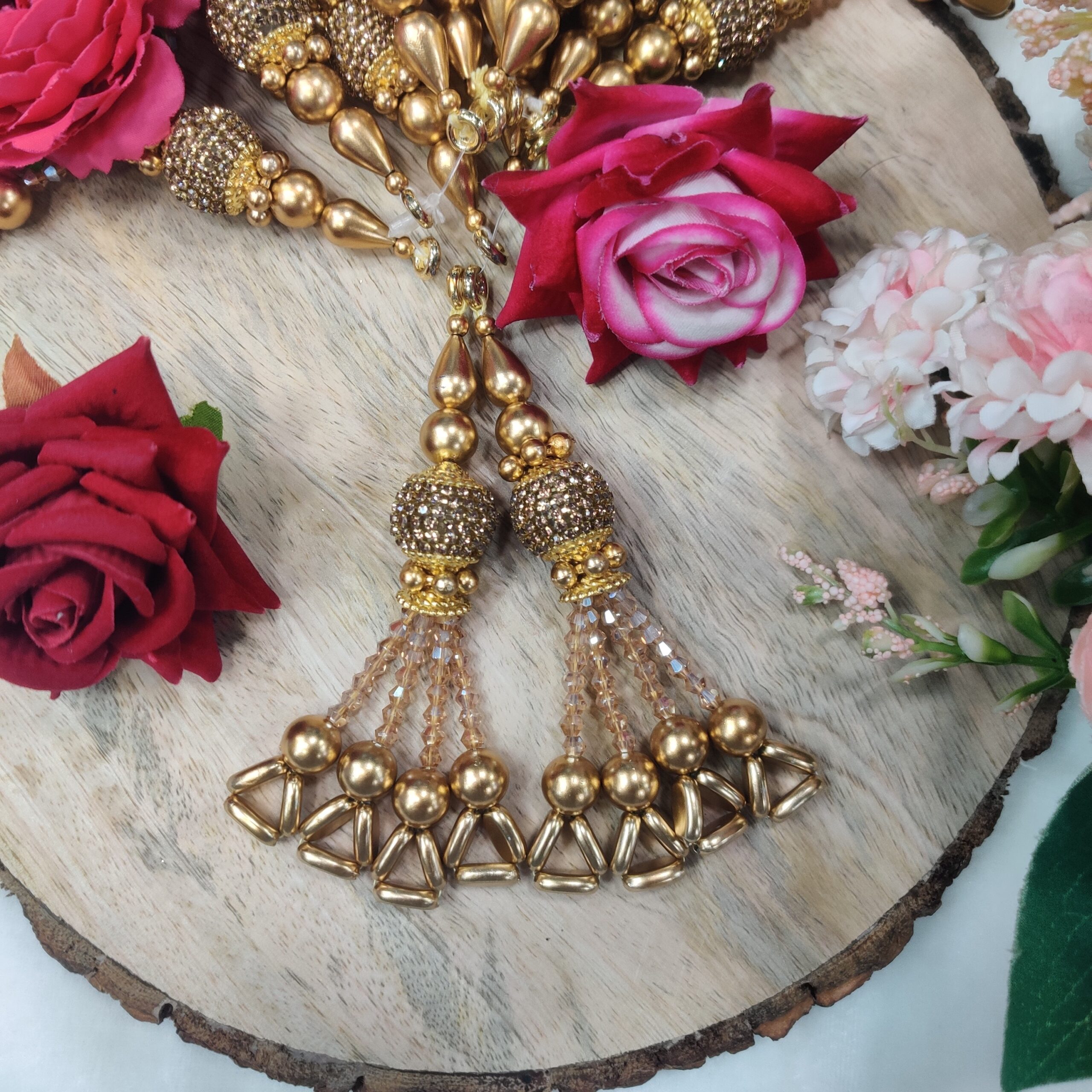 Varniart Amazing Floral Beaded Golden Latkan with Crystal Tassels (2 PCs) L-264