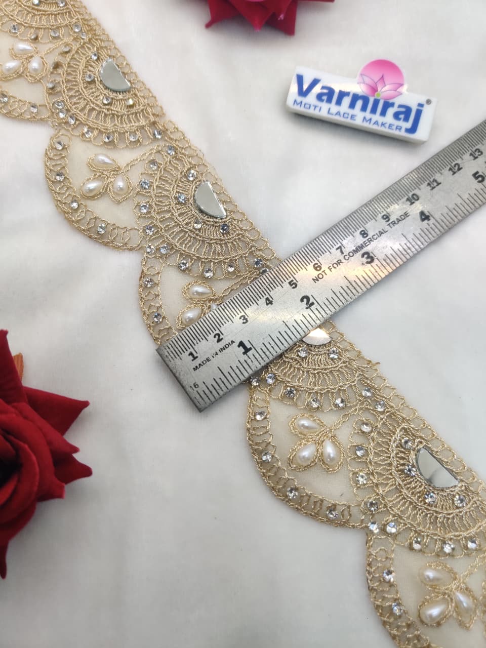 Varniart Amazing Jarkan Stone With Mirror Pearl Lace Trim (9 Meter- 50 MM Width) S 852