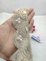 Varniart Amazing Premium Pearl & Stone Embroidered Lace Border (9 Meter- 95 MM Width) S 807