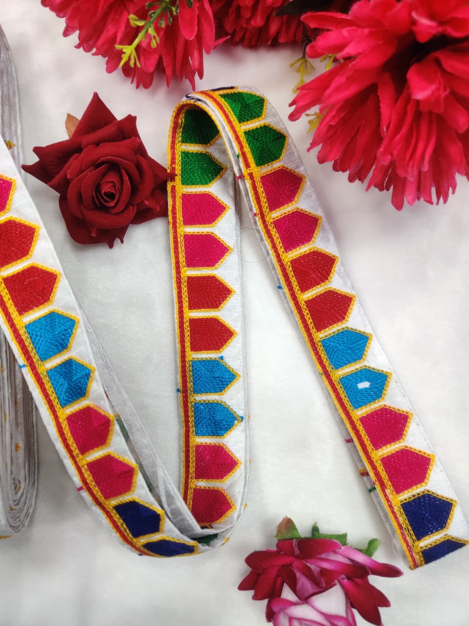 Varniart Gamthi(kachi) Embroidered Lace (35 MM Width, 9 Meter)- E 935