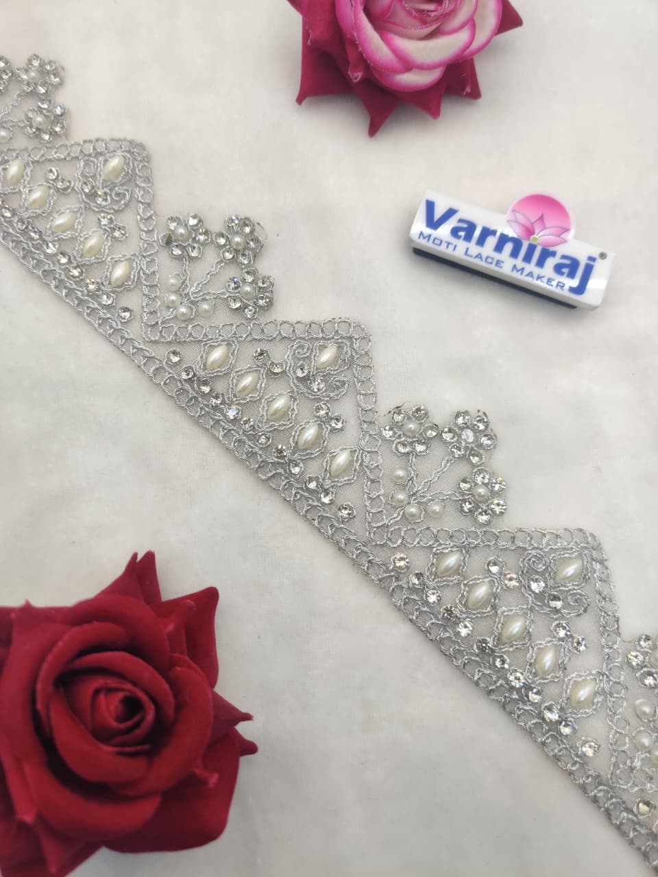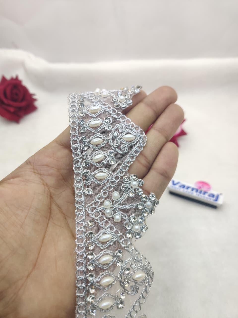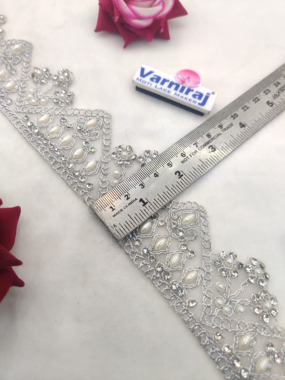 Home Stone & Mirror Border Varniart Amazing pearl and Stone Embroidered Lace Border (9 Meter- 50 MM Width) S 727