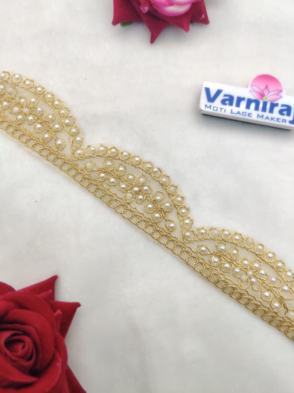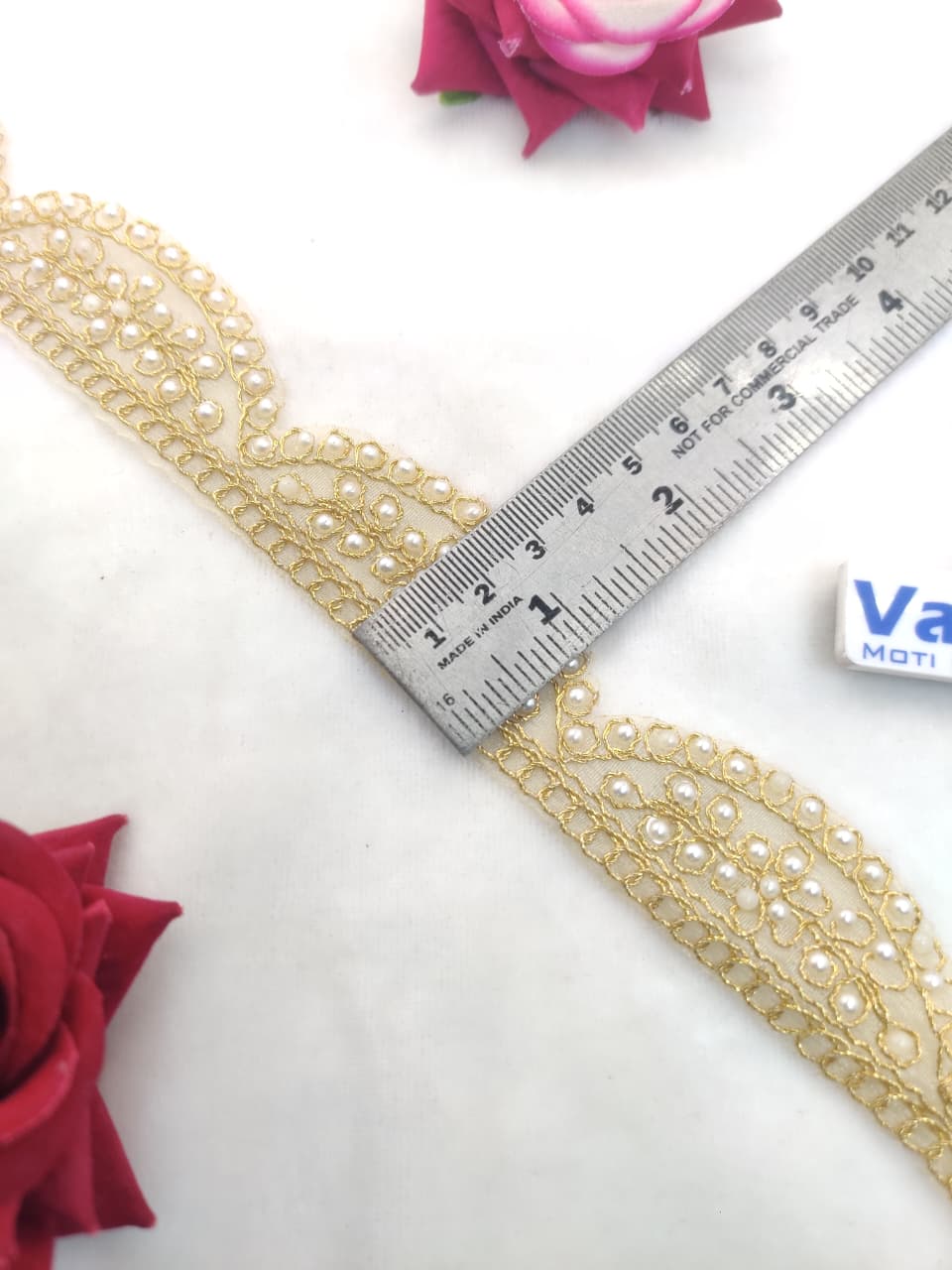 Varniart Amazing Pearl Embroidered Lace Border (9 Meter- 27 MM Width) S 886
