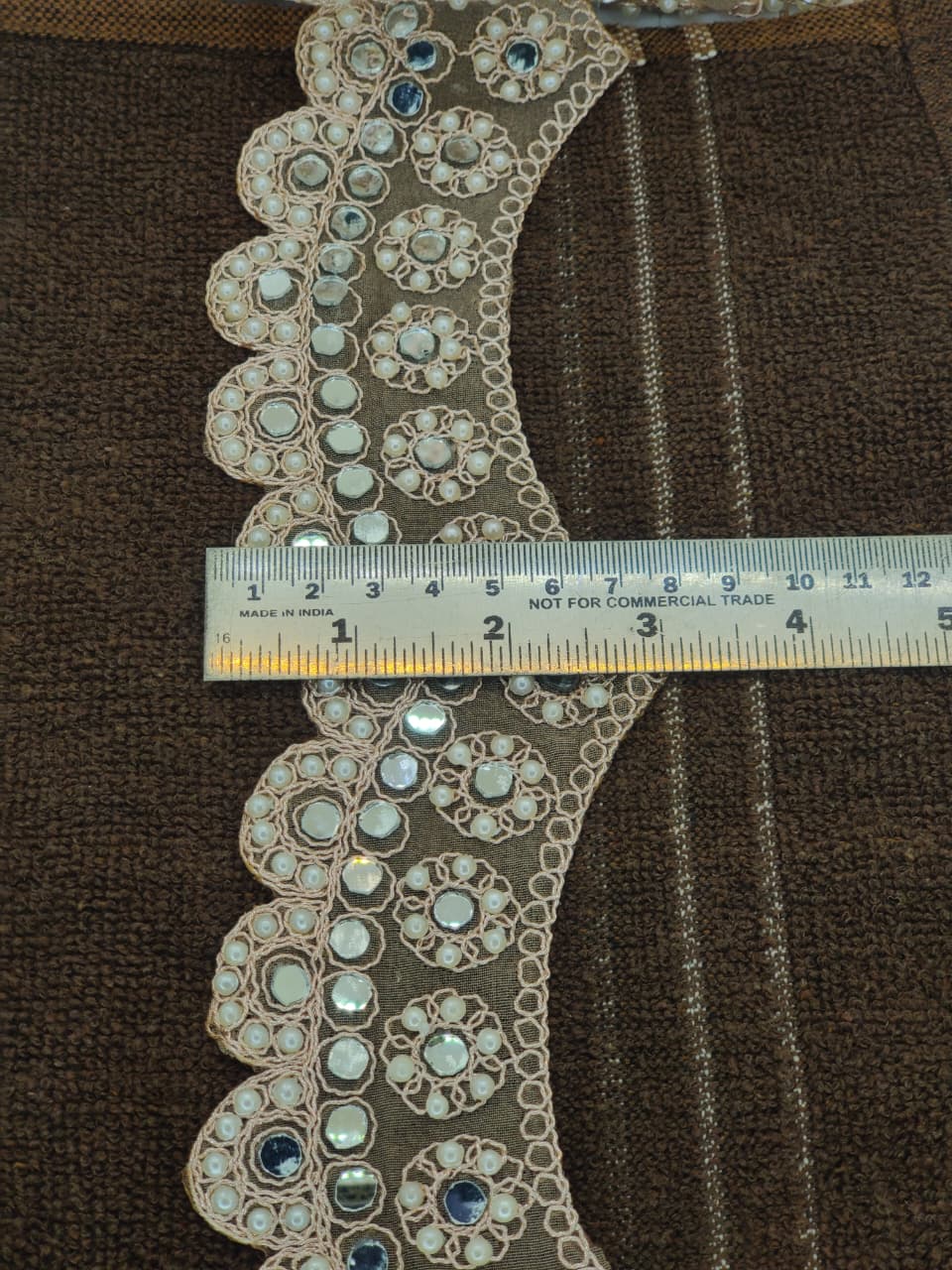 Varniart Amazing Pearl & Mirror Embroidery Lace Border (9 Meter- 76 MM Width)- S 826