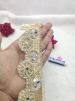 Varniart Amazing pearl and Stone Embroidered Lace Border (9 Meter- 50 MM Width) S 727