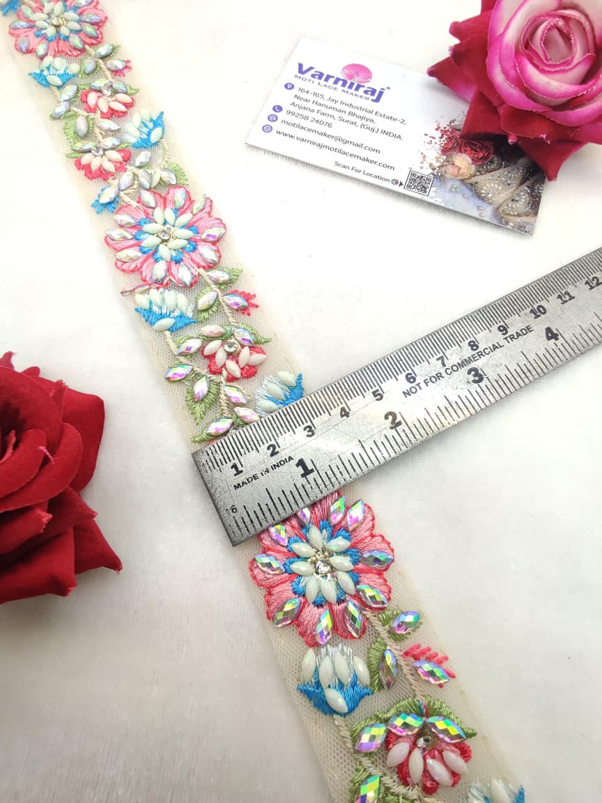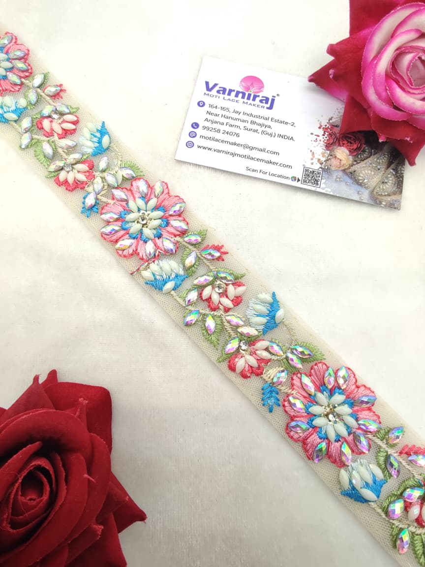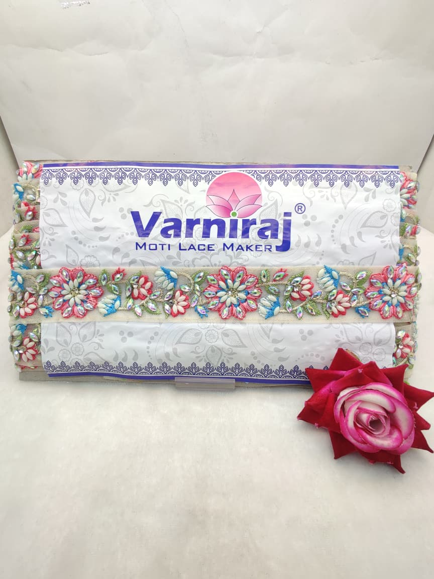 Varniart Amazing Stone Work Floral Embroidery Lace Border | Designer Beaded Trim for Saree, Lehenga, Dupatta & Craft Decoration (9 Meter) | S 353