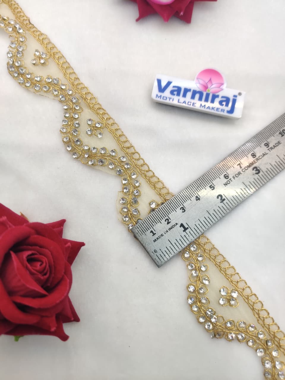 Be the first to review “Varniart Amazing Wave shape border lace with Jarkan stone (9 Meter- 55 MM Width) S 882” Cancel reply