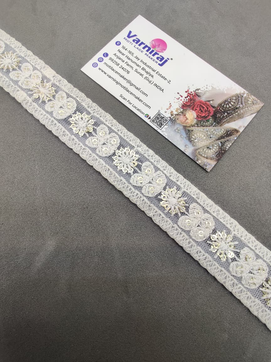 Bring a touch of elegance to your ethnic wear and creative projects with Varniraj Cotton Mirror Work Lace.