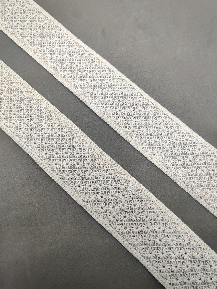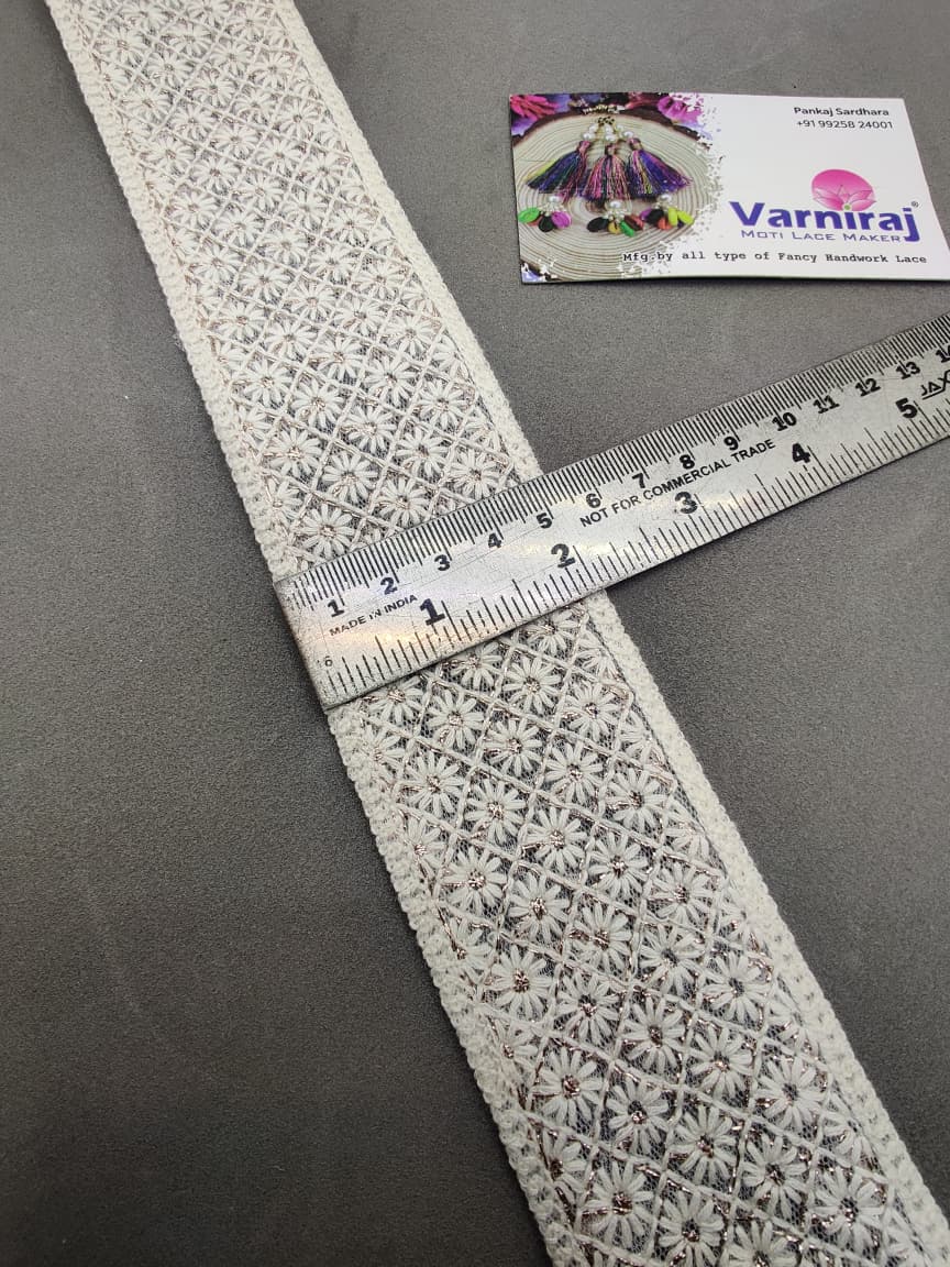 Bring a touch of elegance to your ethnic wear and creative projects with Varniraj Cotton Mirror Work Lace.