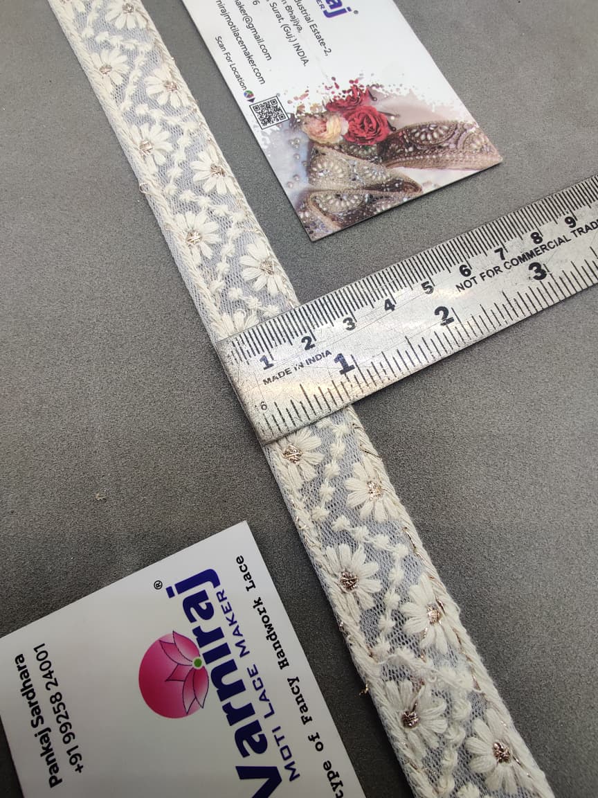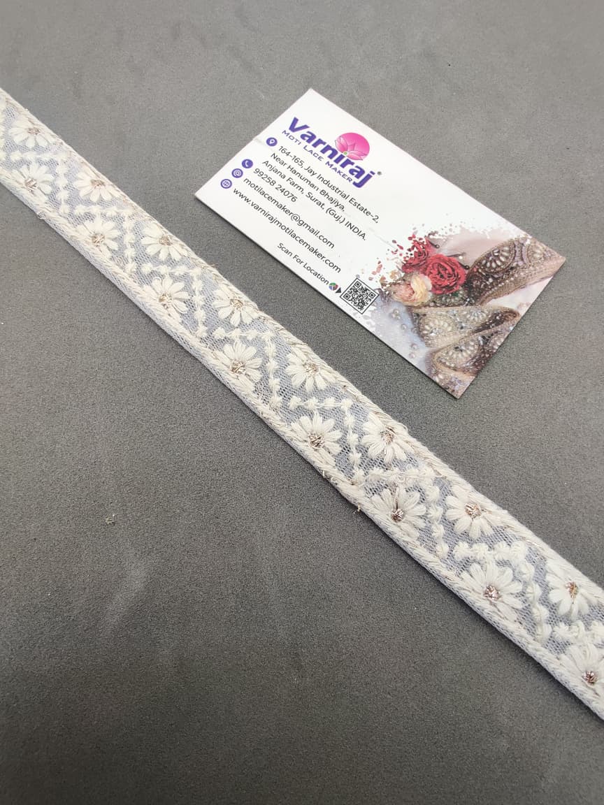 Bring a touch of elegance to your ethnic wear and creative projects with Varniraj Cotton Mirror Work Lace.