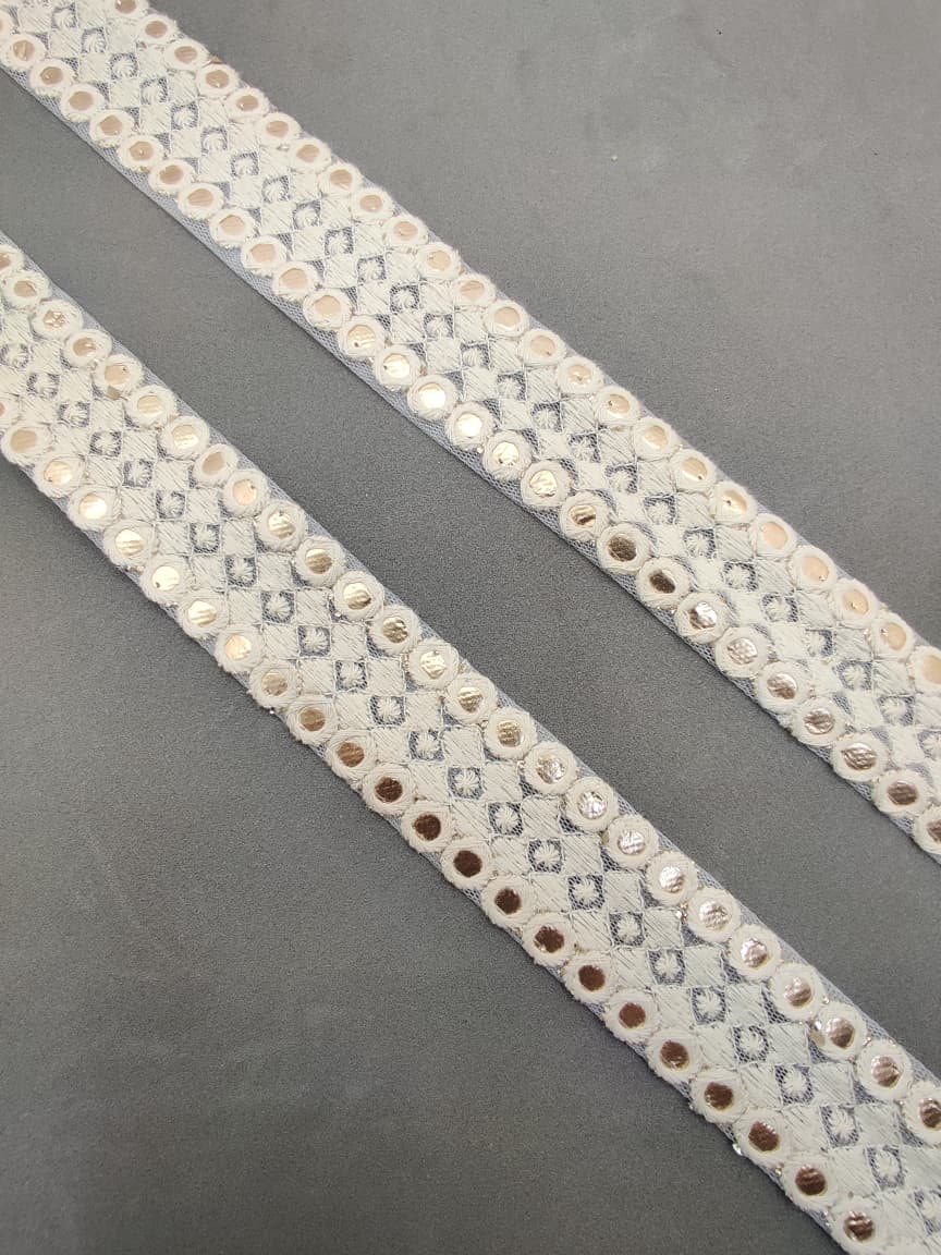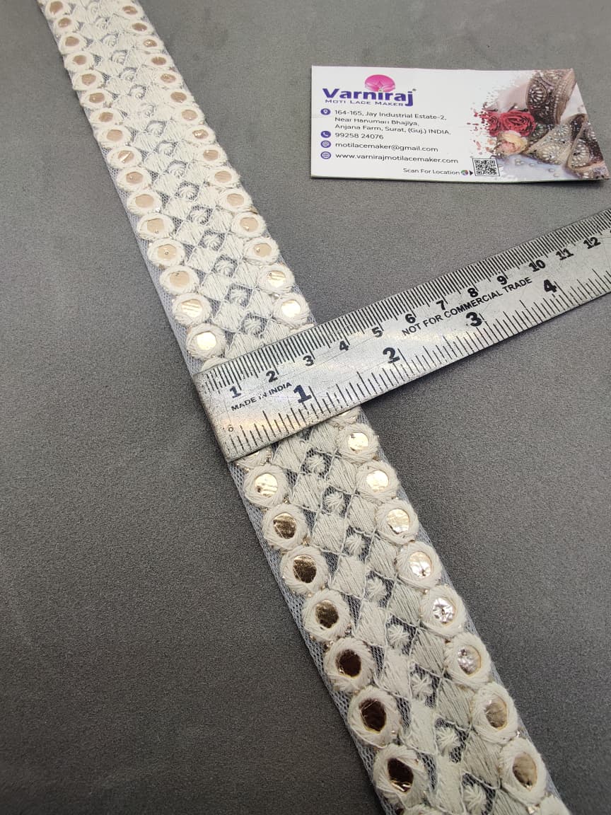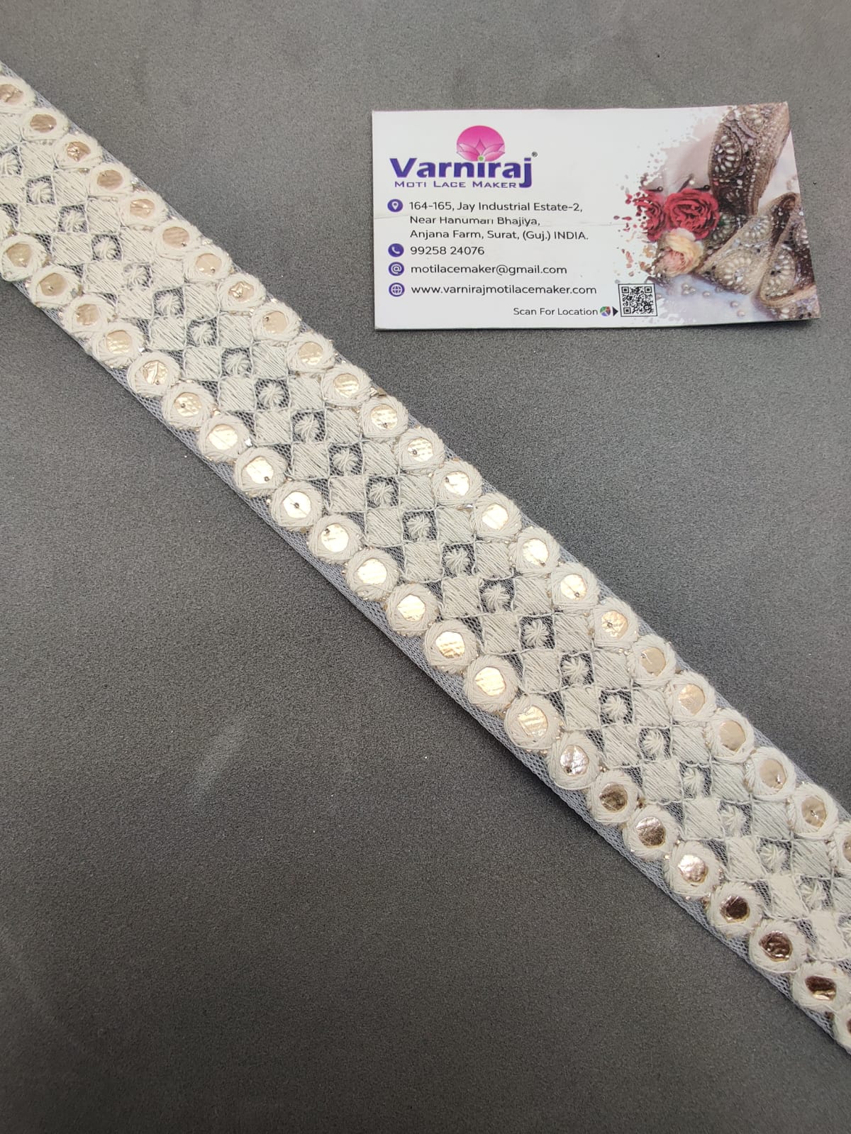 Bring a touch of elegance to your ethnic wear and creative projects with Varniraj Cotton Mirror Work Lace.