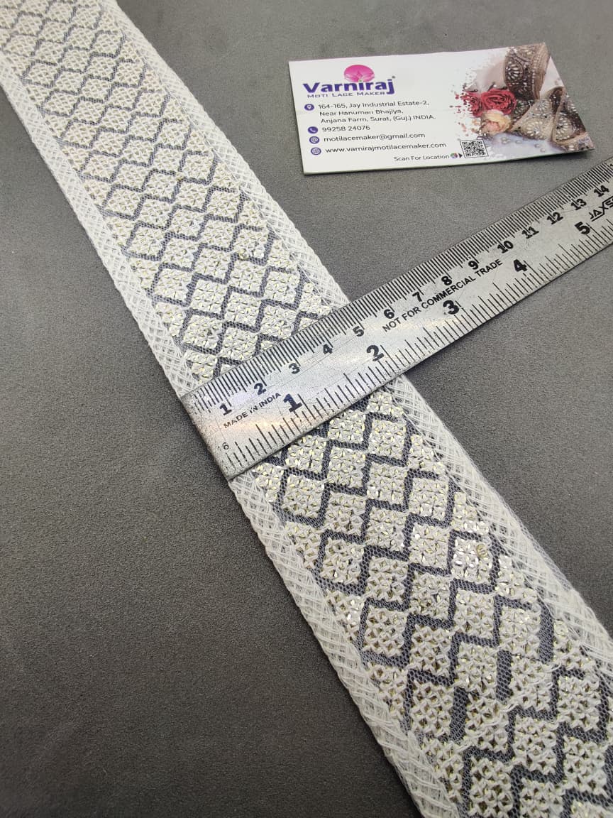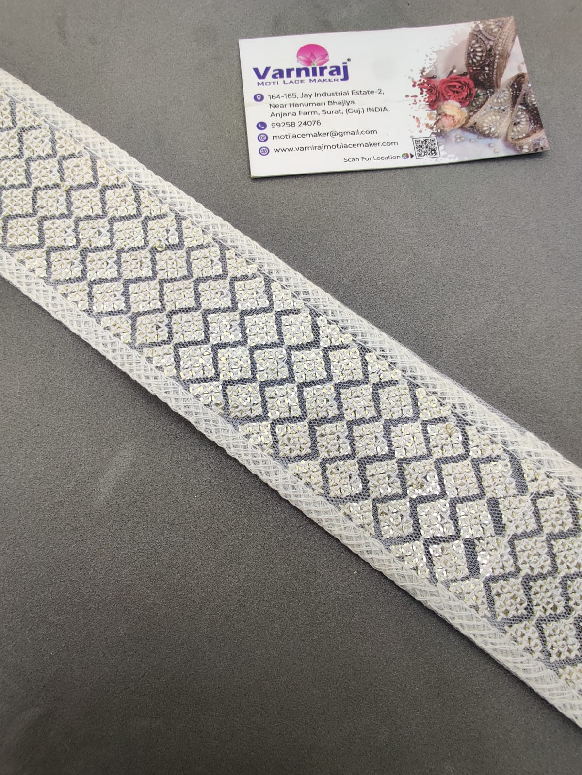 Bring a touch of elegance to your ethnic wear and creative projects with Varniraj Cotton Mirror Work Lace.