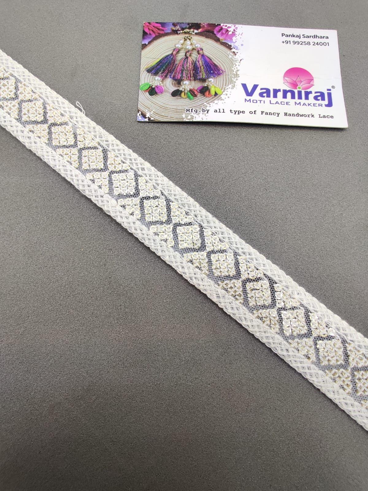 Bring a touch of elegance to your ethnic wear and creative projects with Varniraj Cotton Mirror Work Lace.