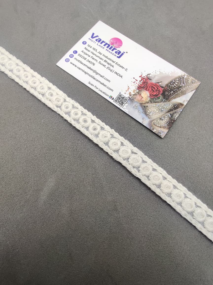 Bring a touch of elegance to your ethnic wear and creative projects with Varniraj Cotton Mirror Work Lace.