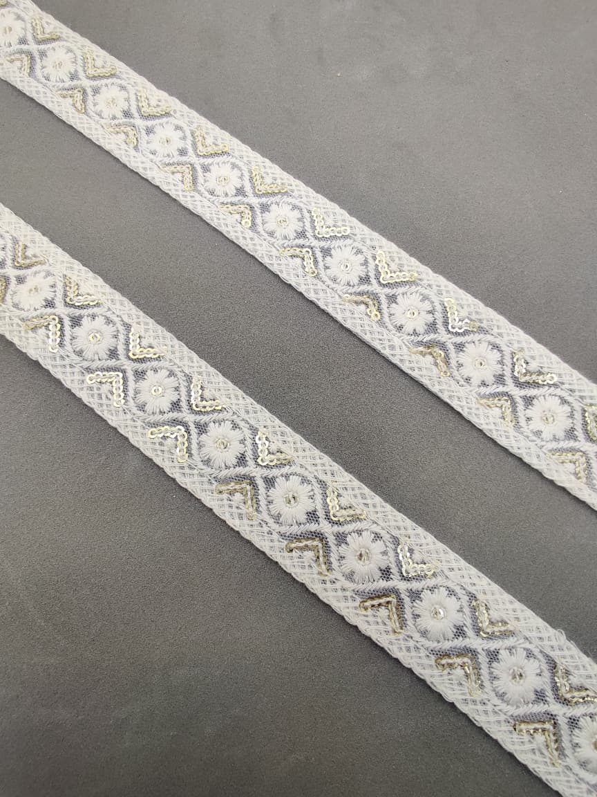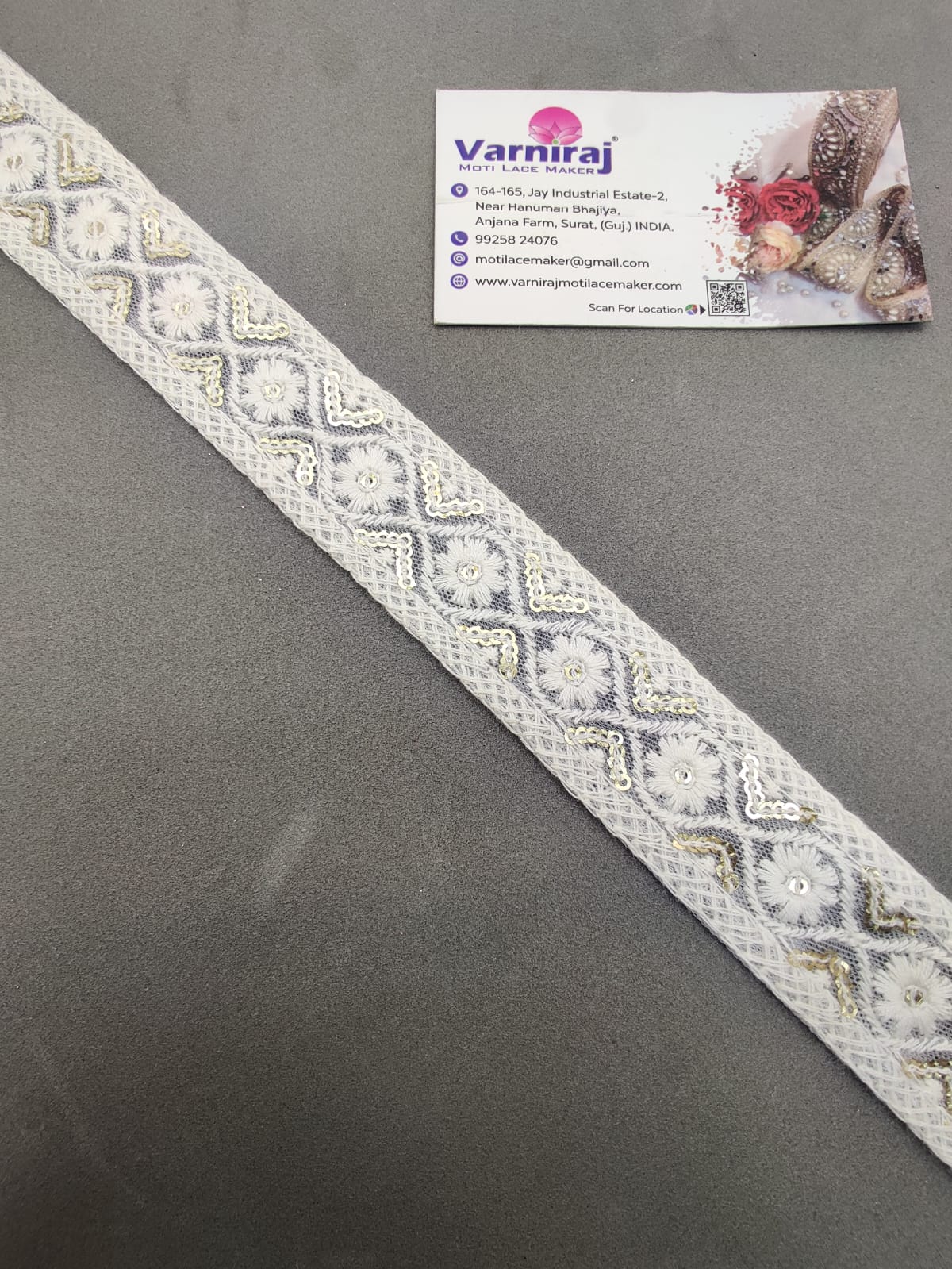 Bring a touch of elegance to your ethnic wear and creative projects with Varniraj Cotton Mirror Work Lace.