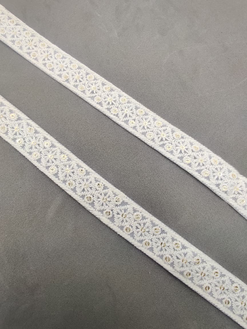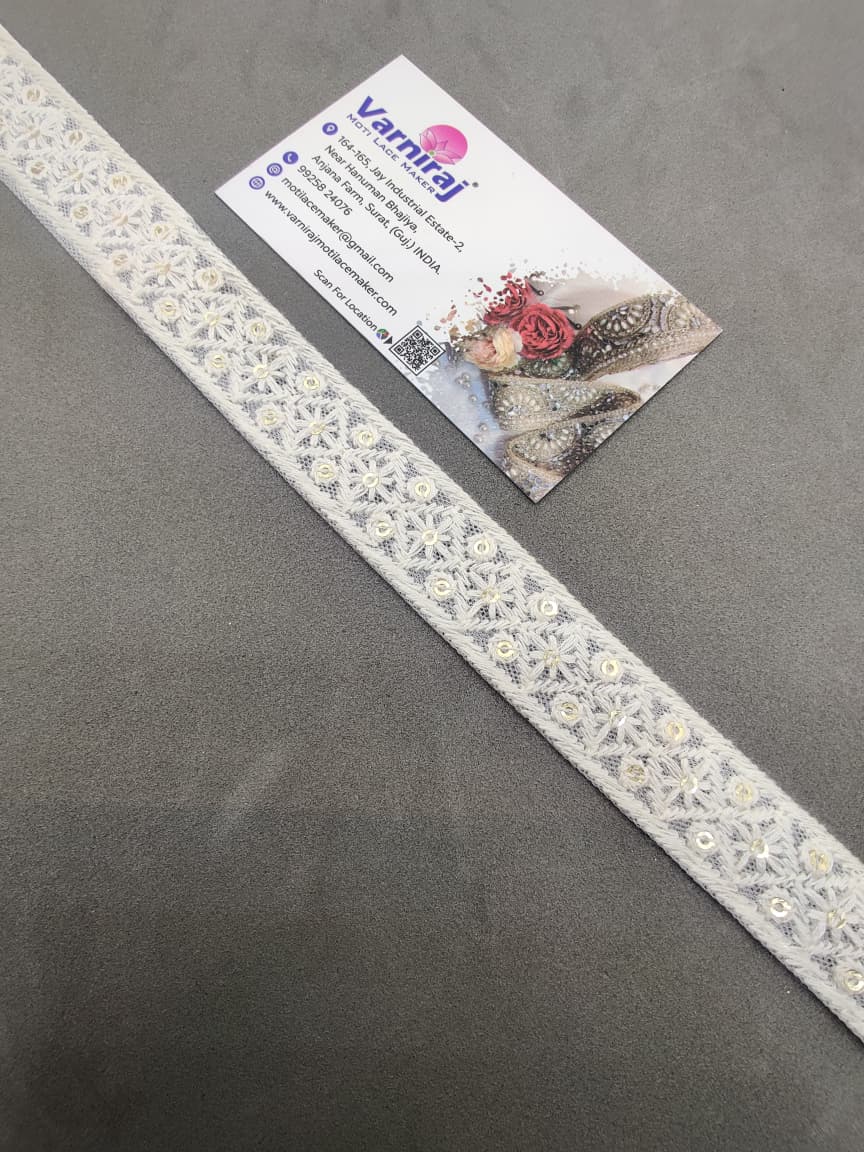 Bring a touch of elegance to your ethnic wear and creative projects with Varniraj Cotton Mirror Work Lace.