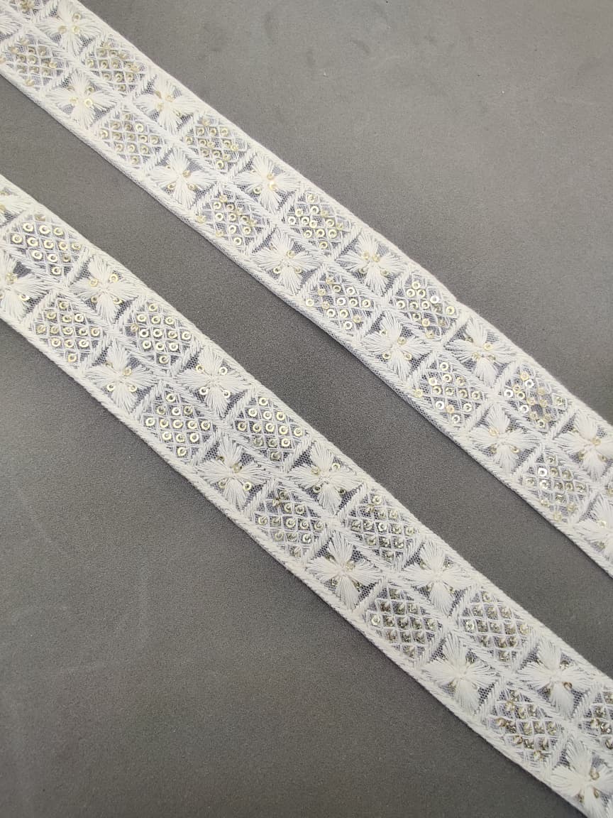 Bring a touch of elegance to your ethnic wear and creative projects with Varniraj Cotton Mirror Work Lace.