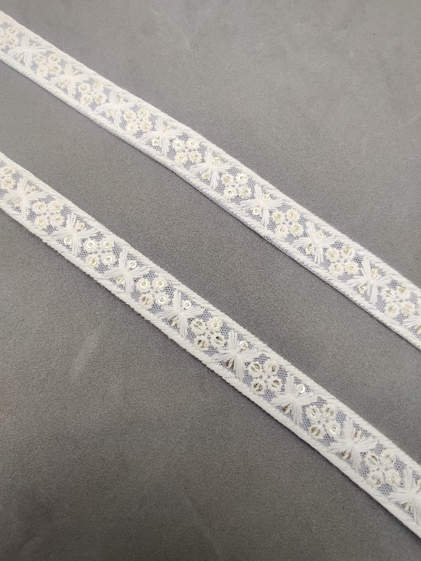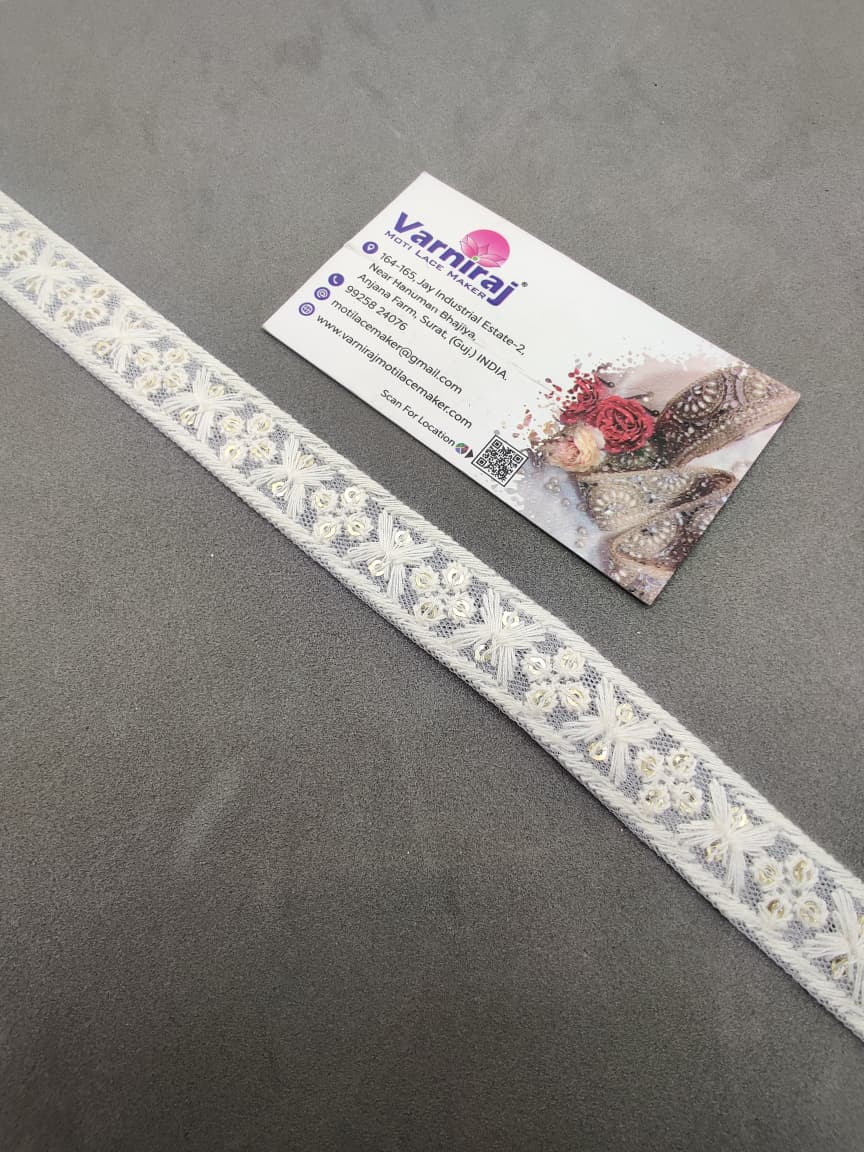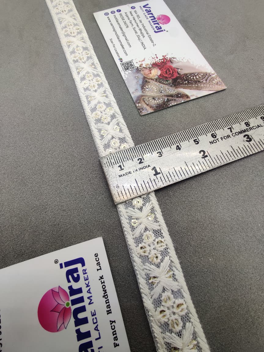 Bring a touch of elegance to your ethnic wear and creative projects with Varniraj Cotton Mirror Work Lace.