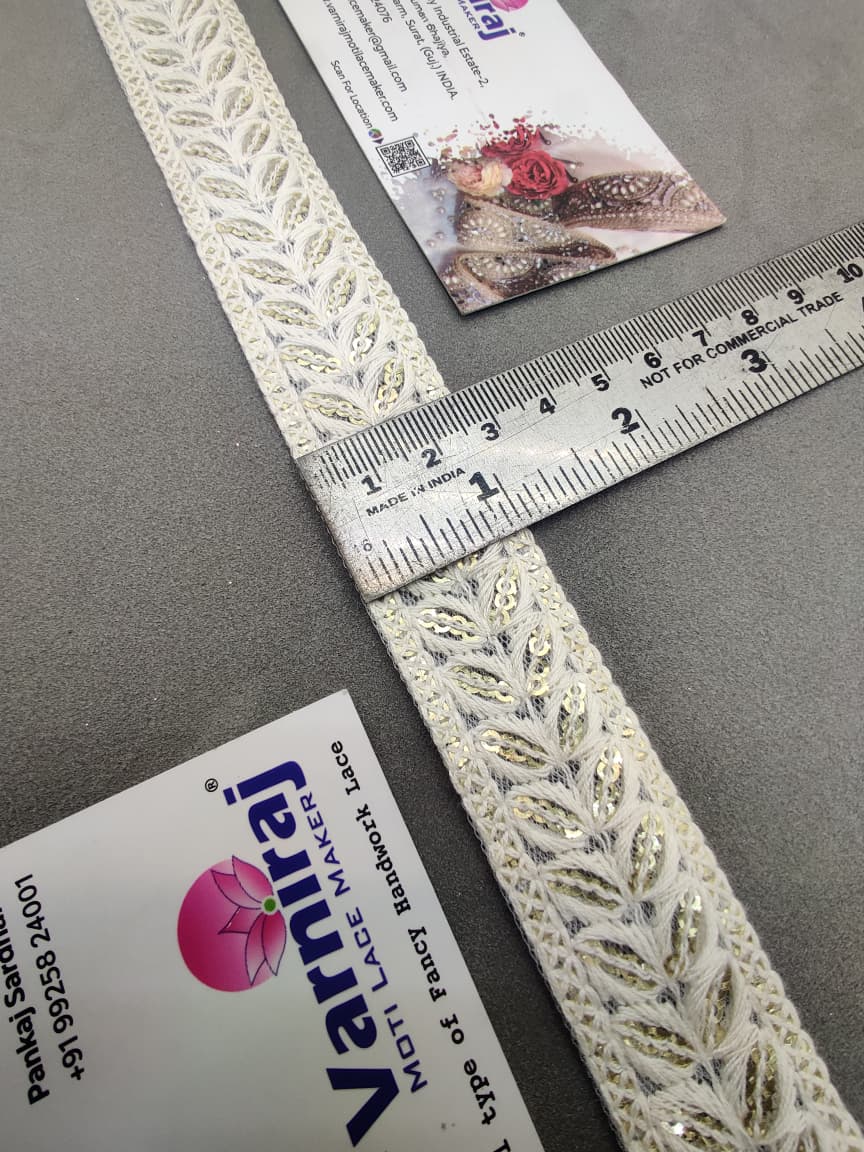 Bring a touch of elegance to your ethnic wear and creative projects with Varniraj Cotton Mirror Work Lace.