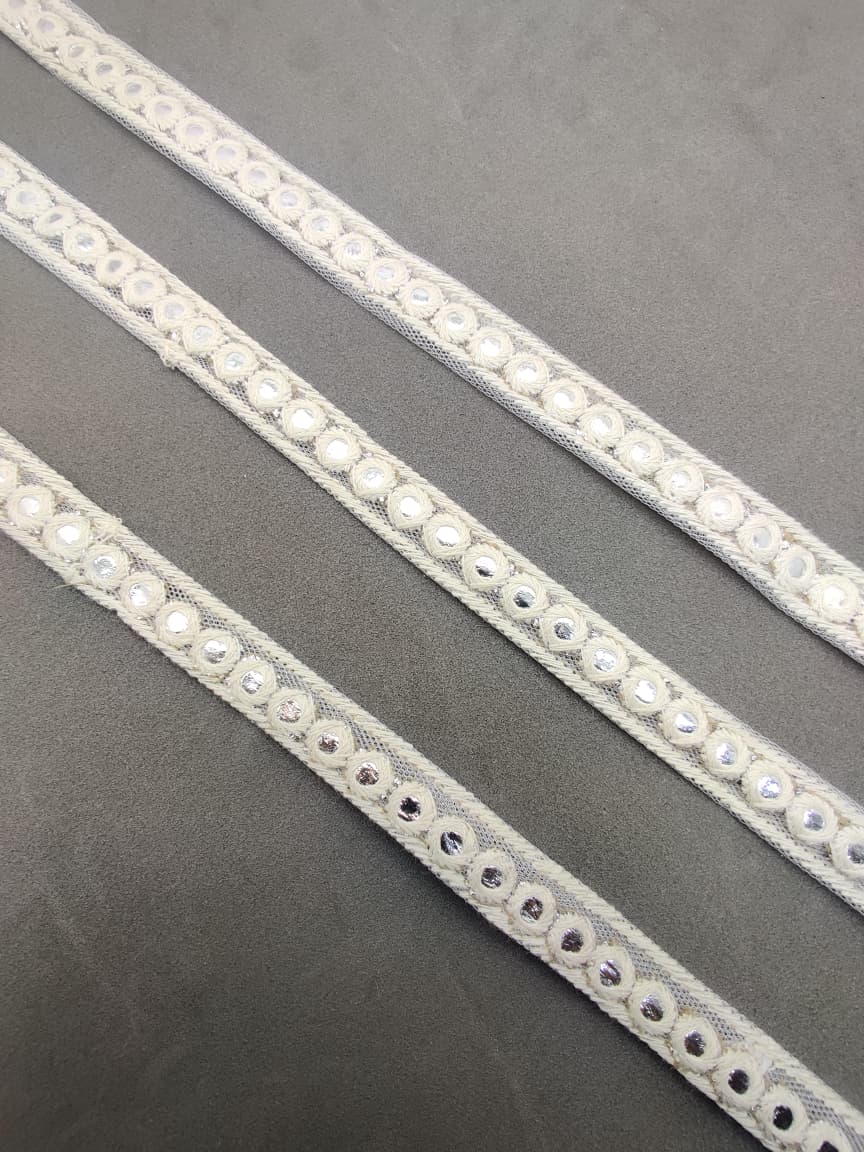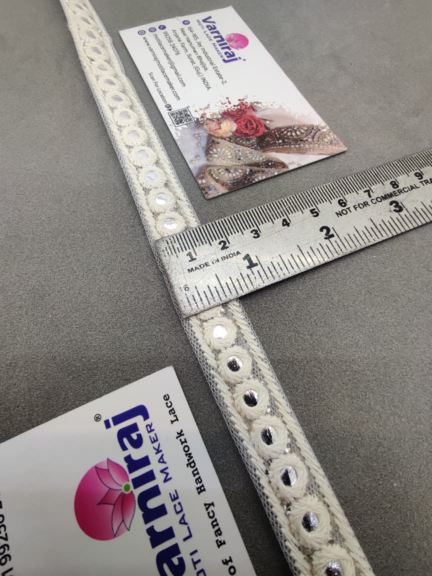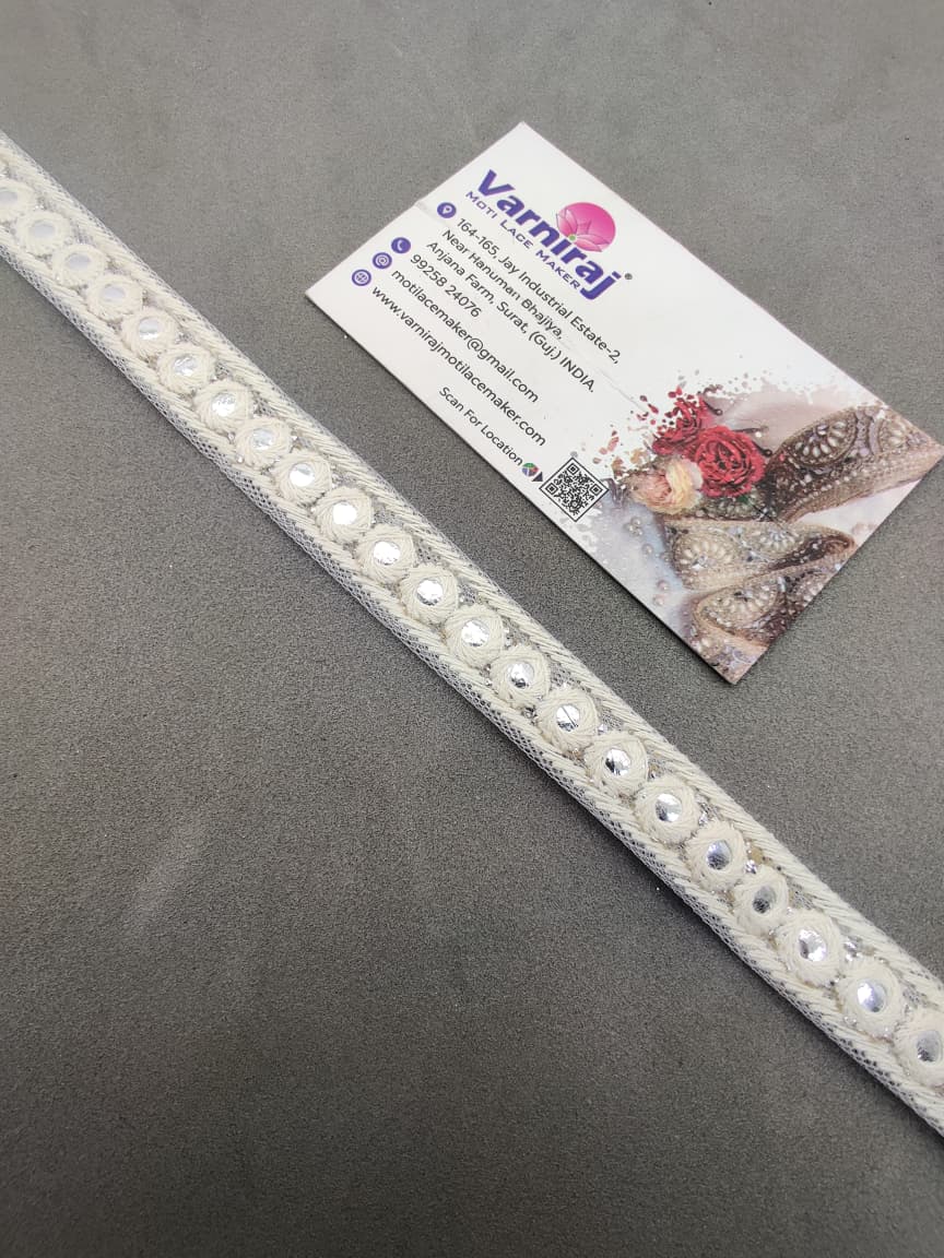 Bring a touch of elegance to your ethnic wear and creative projects with Varniraj Cotton Mirror Work Lace.