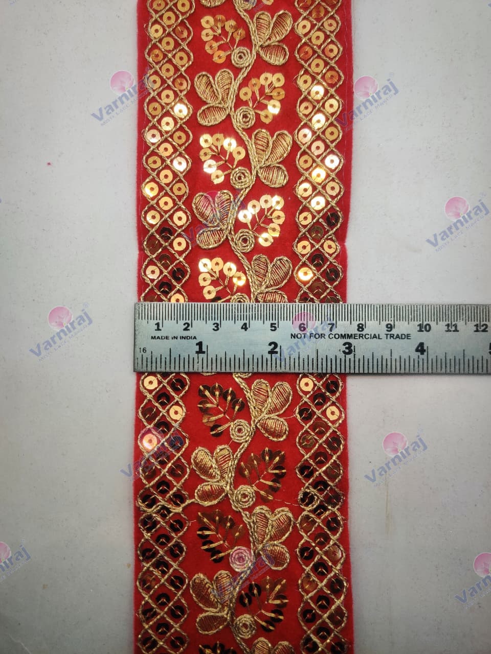 Varniart Floral Emboridery Sequence Lace Border for Sewing, Decoration & Crafts | Elegant Border Trim for Sarees, Lehengas, Dresses, and DIY Projects (6.8 CM Width, 9 Meter)- E 0027