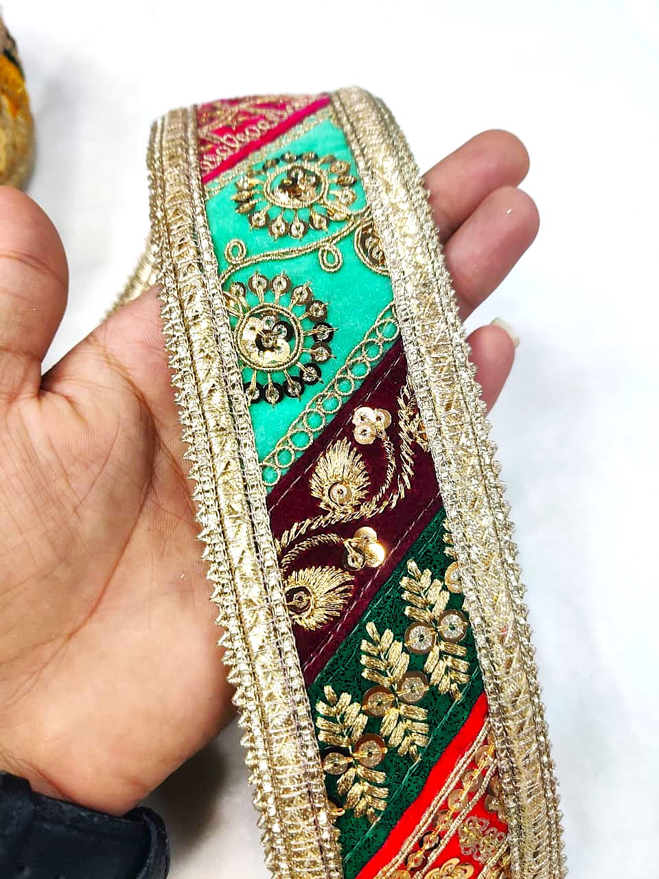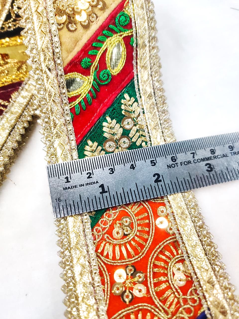 Varniart Vibrant Phulkari Lace Border Trim (25 MM Width, 9 Meter)- E 870