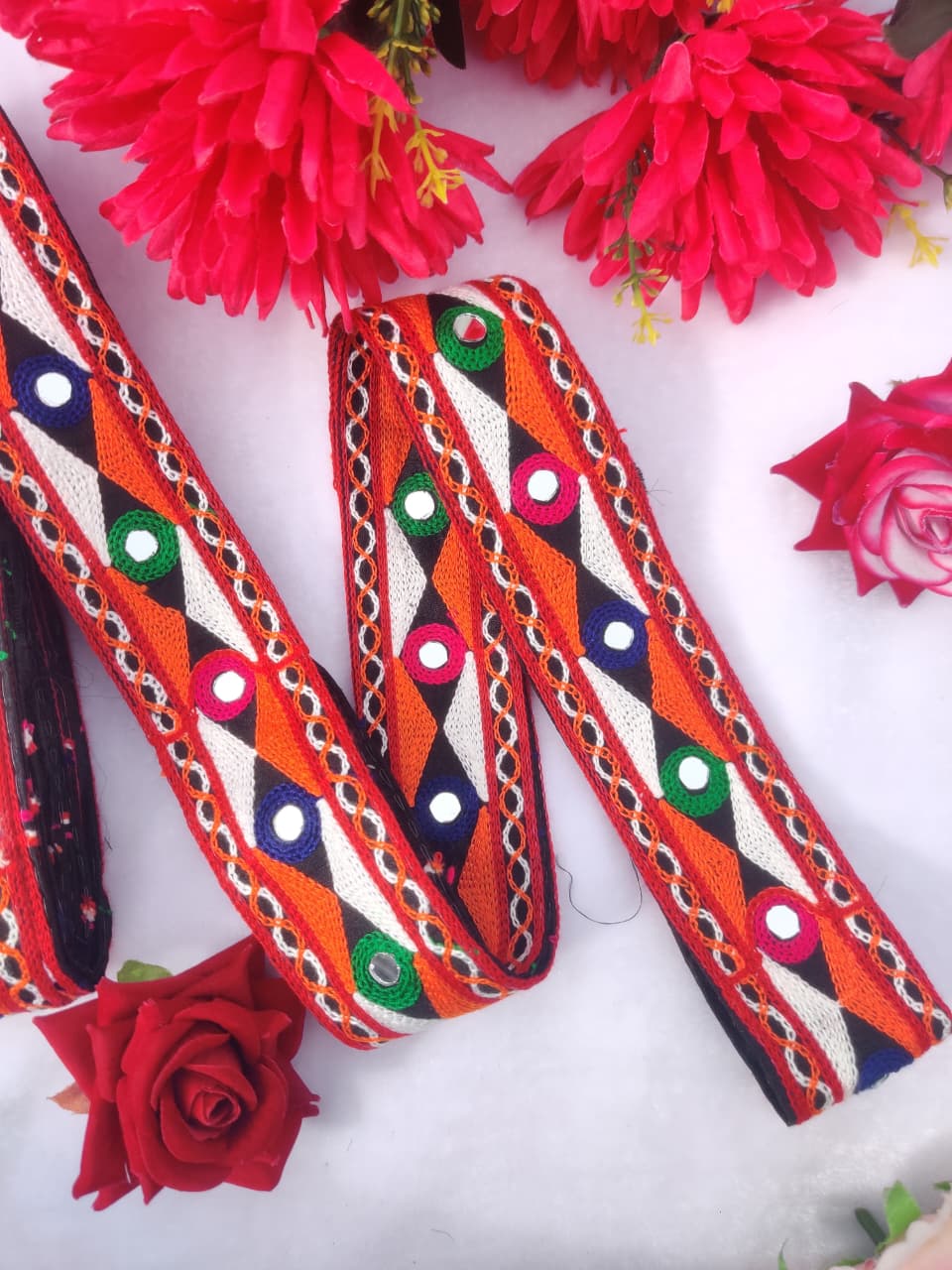 Varniart Traditional Kutchi lace with triangle mirror lace (45 MM Width, 9 Meter)- S 985
