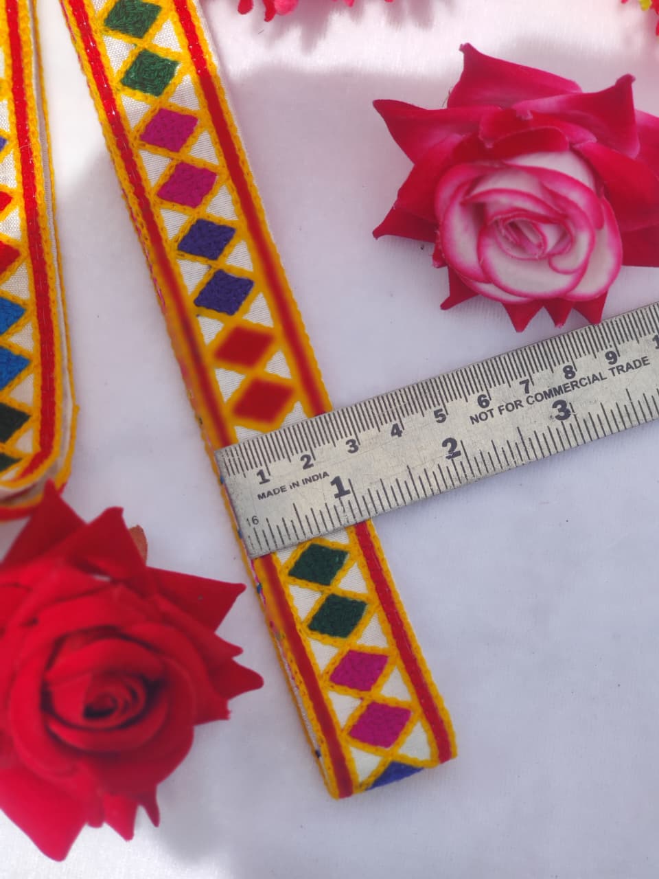 Varniart Vibrant Phulkari Lace Border Trim (25 MM Width, 9 Meter)- E 870