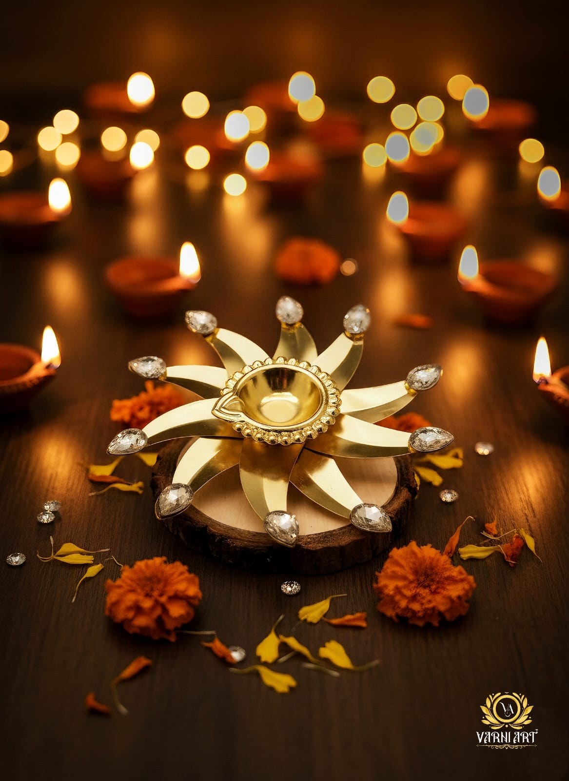 Varniart’s Lotus -shaped Oil Lamp | 4 Pis