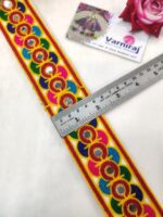 Vibrant Kachi Embroidery Lace with Circular Mirrors (9meter, 50mm width)-S 892